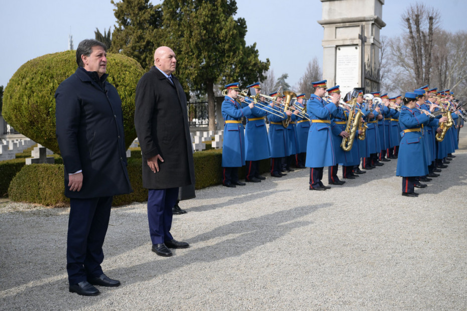 Ministar odbrane Bratislav Gašić i ministar odbrane Italije Gvido Krozeto položili su danas vence i odali počast na Italijanskom vojnom groblju i kod Spomen-kosturnice braniocima Beograda u Prvom svetskom ratu.