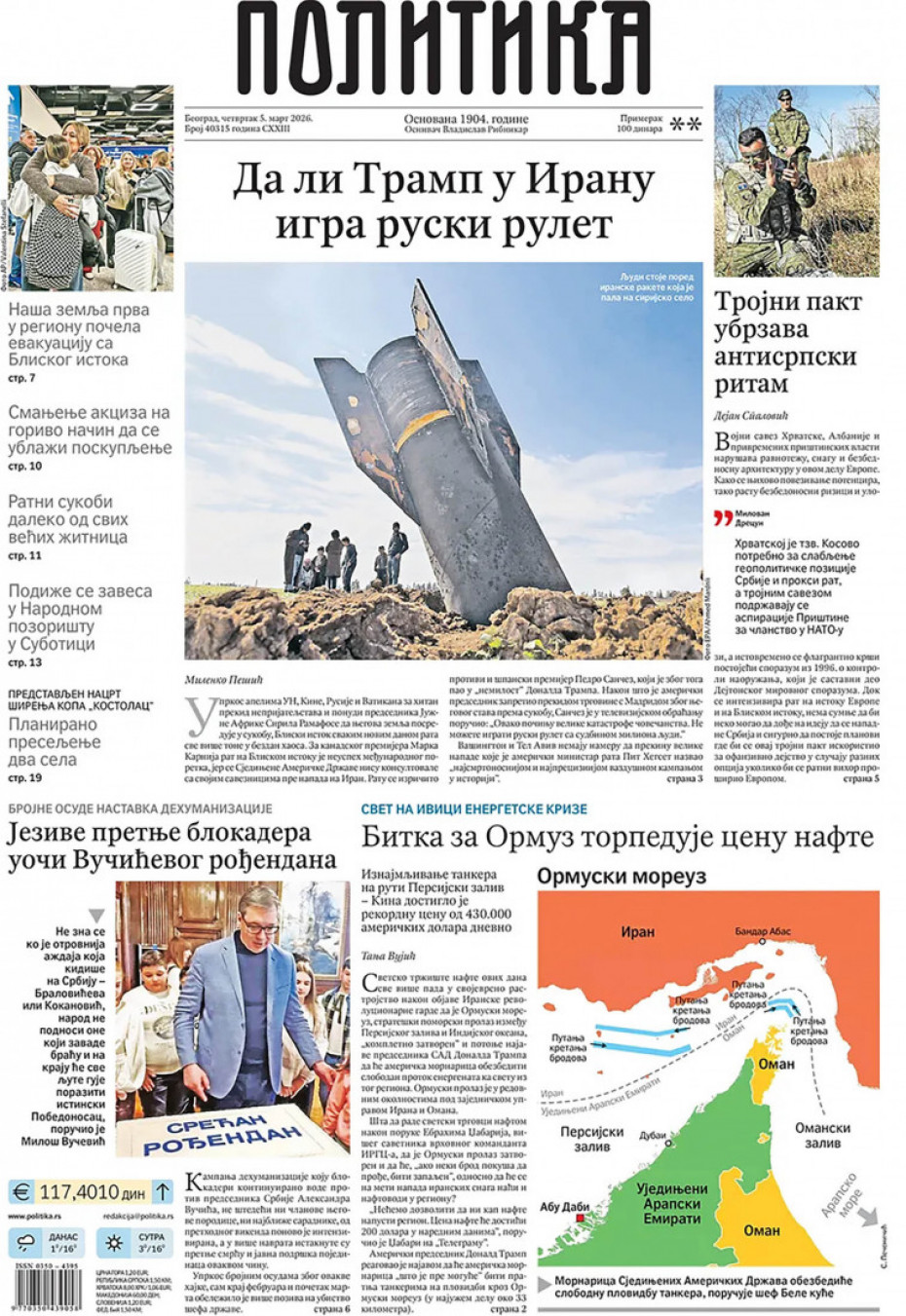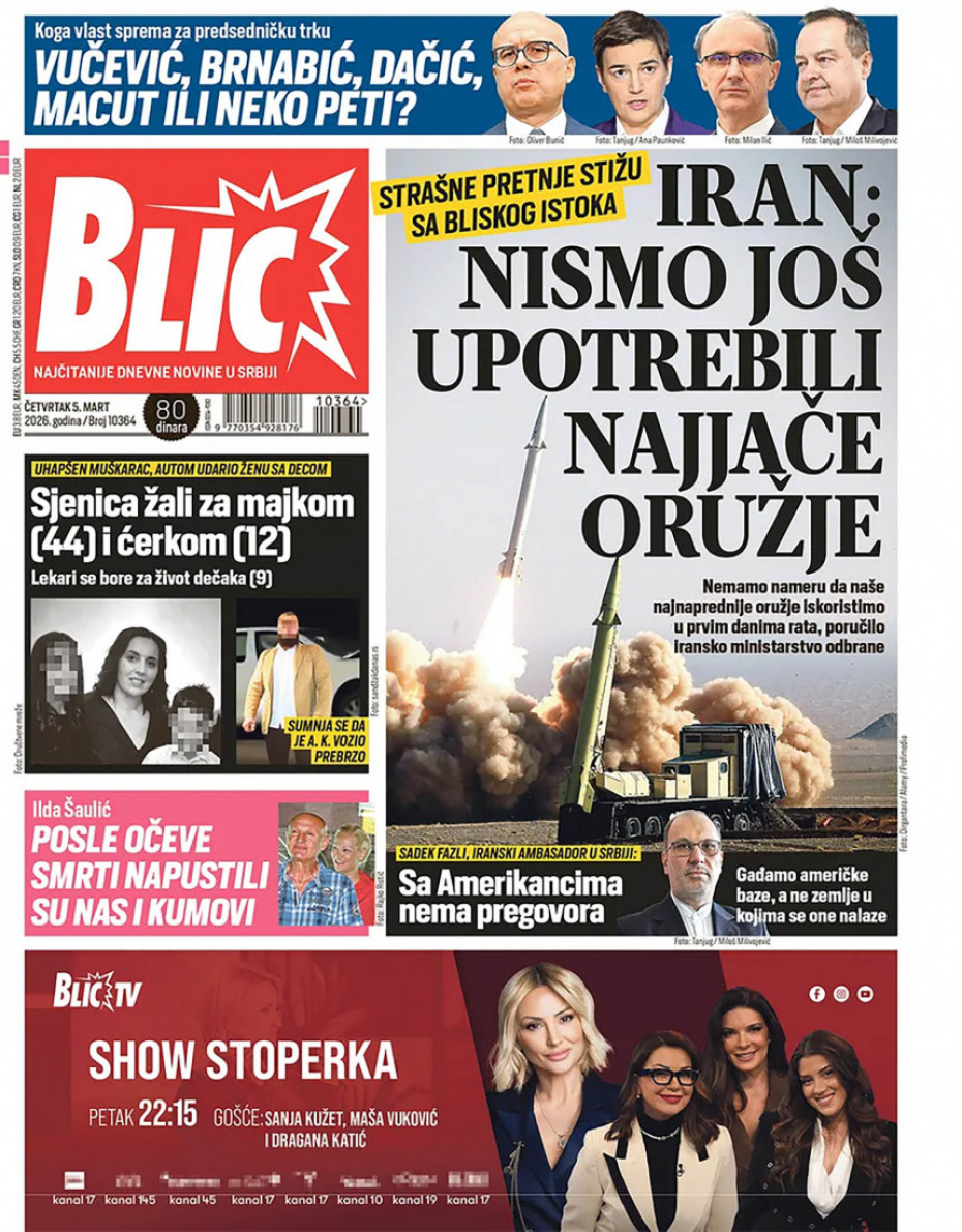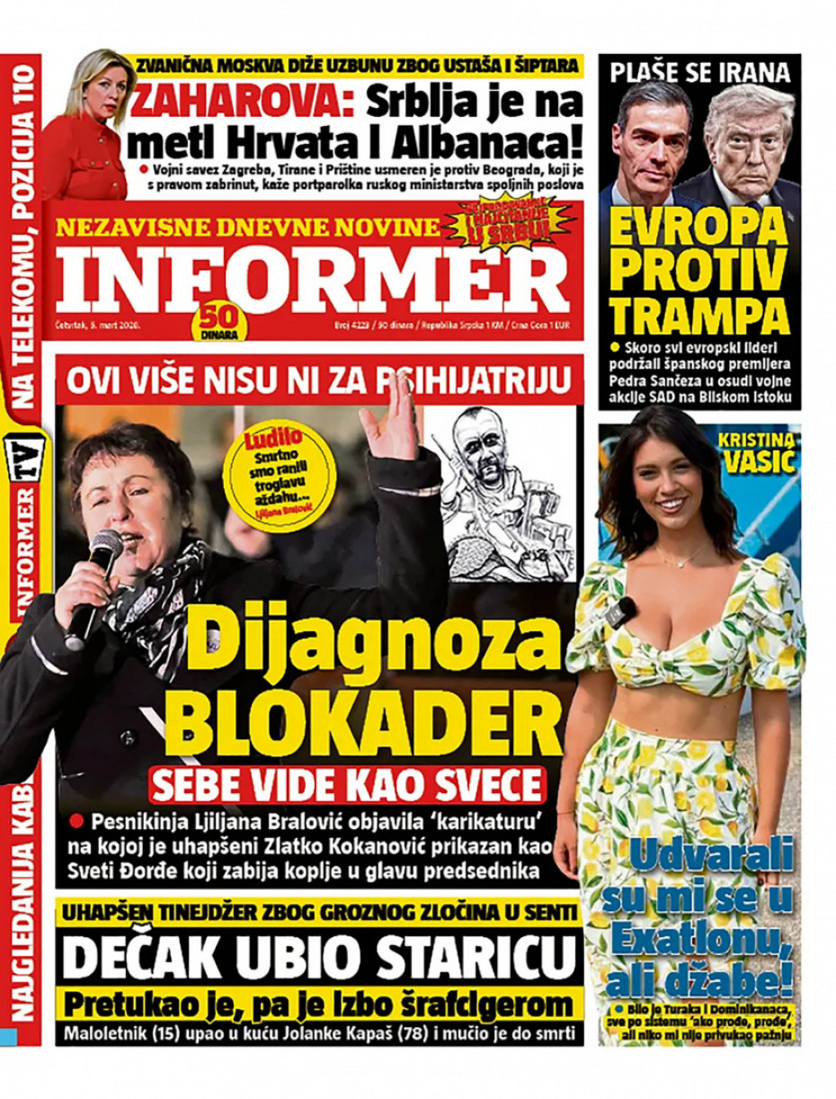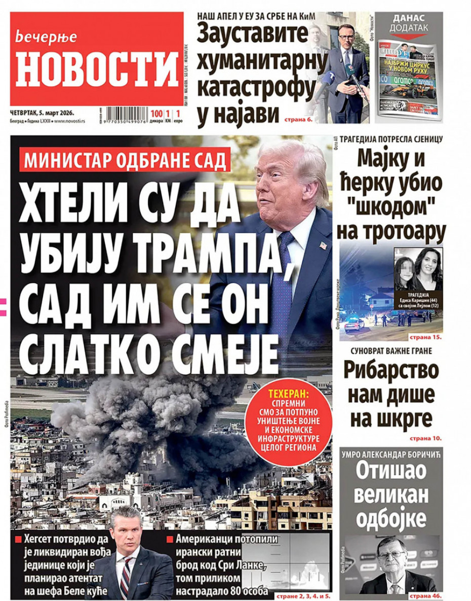 Naslovne strane dnevne štampe za četvrtak, 5. mart