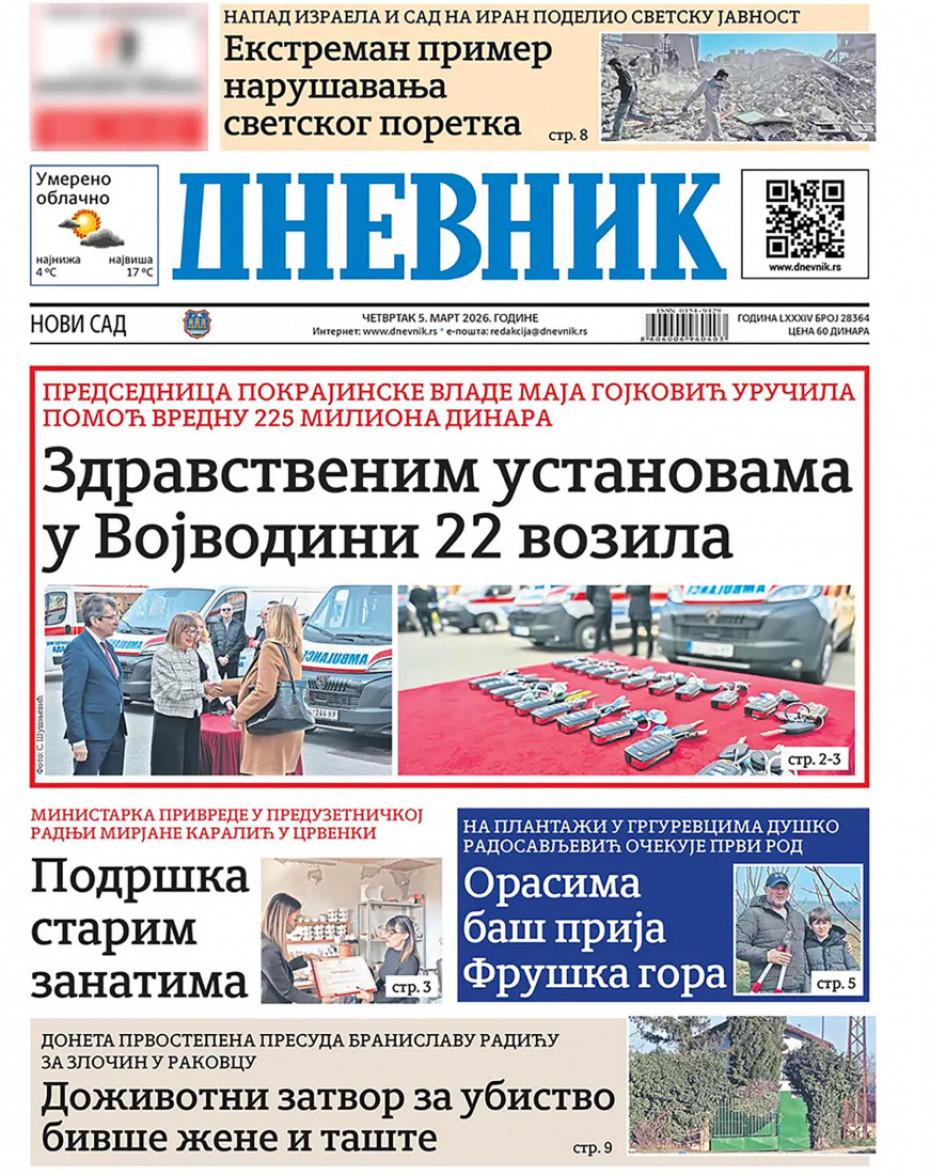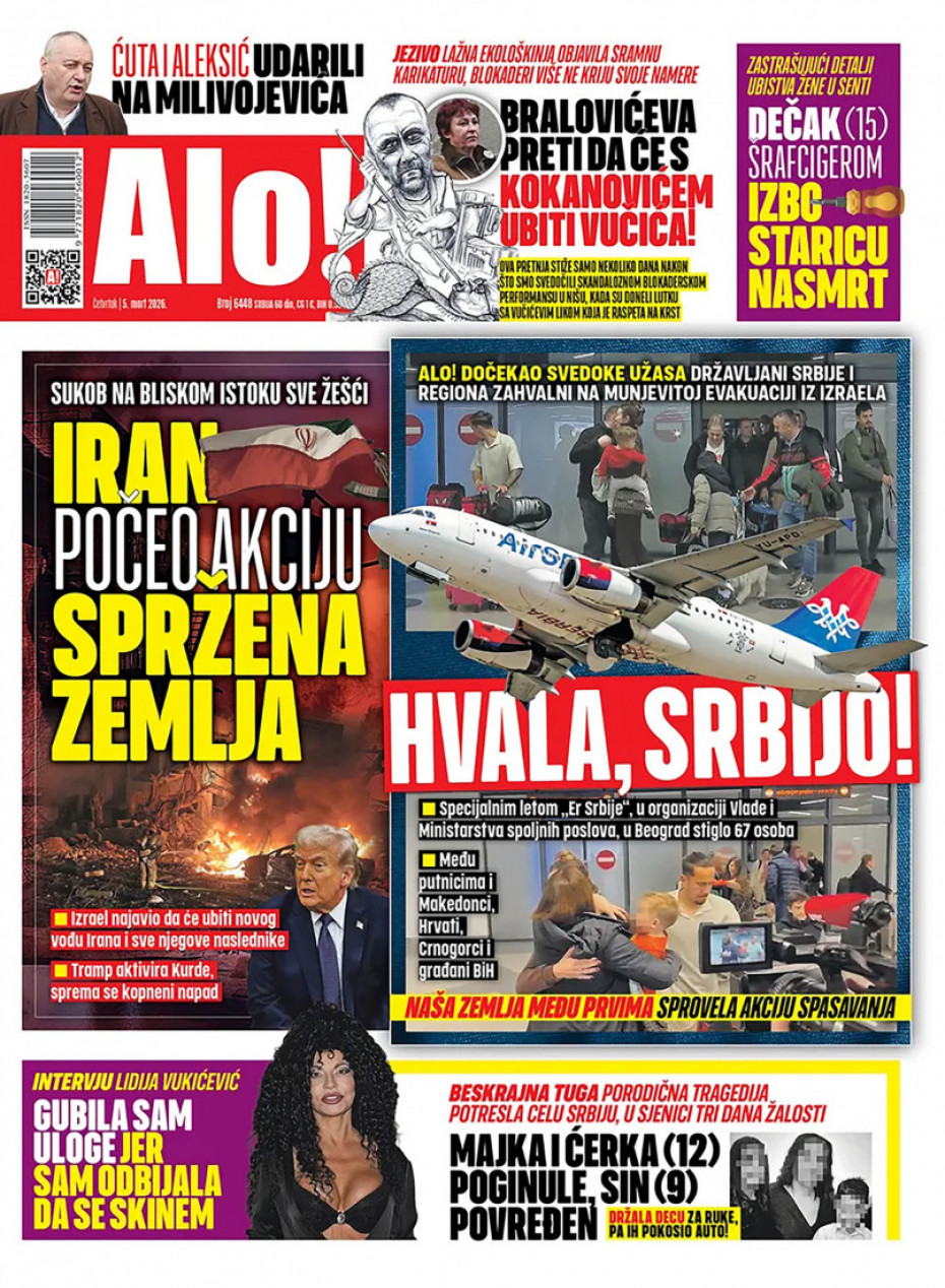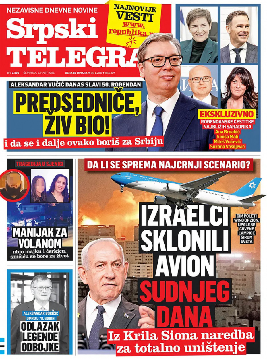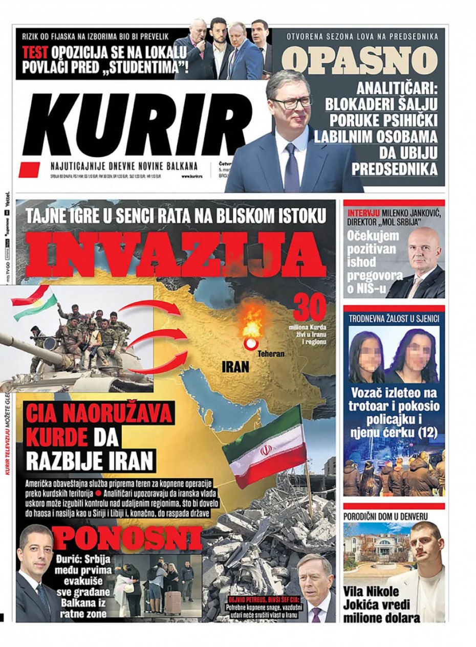 Pogledajte šta na naslovnim stranama donose dnevne novine u Srbiji u izdanju za četvrtak, 5. mart