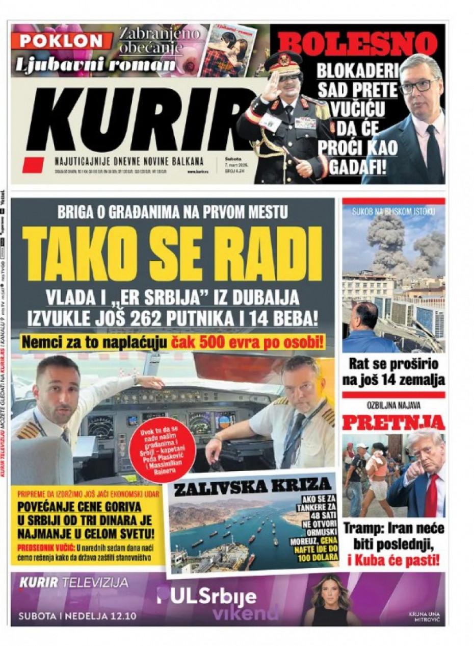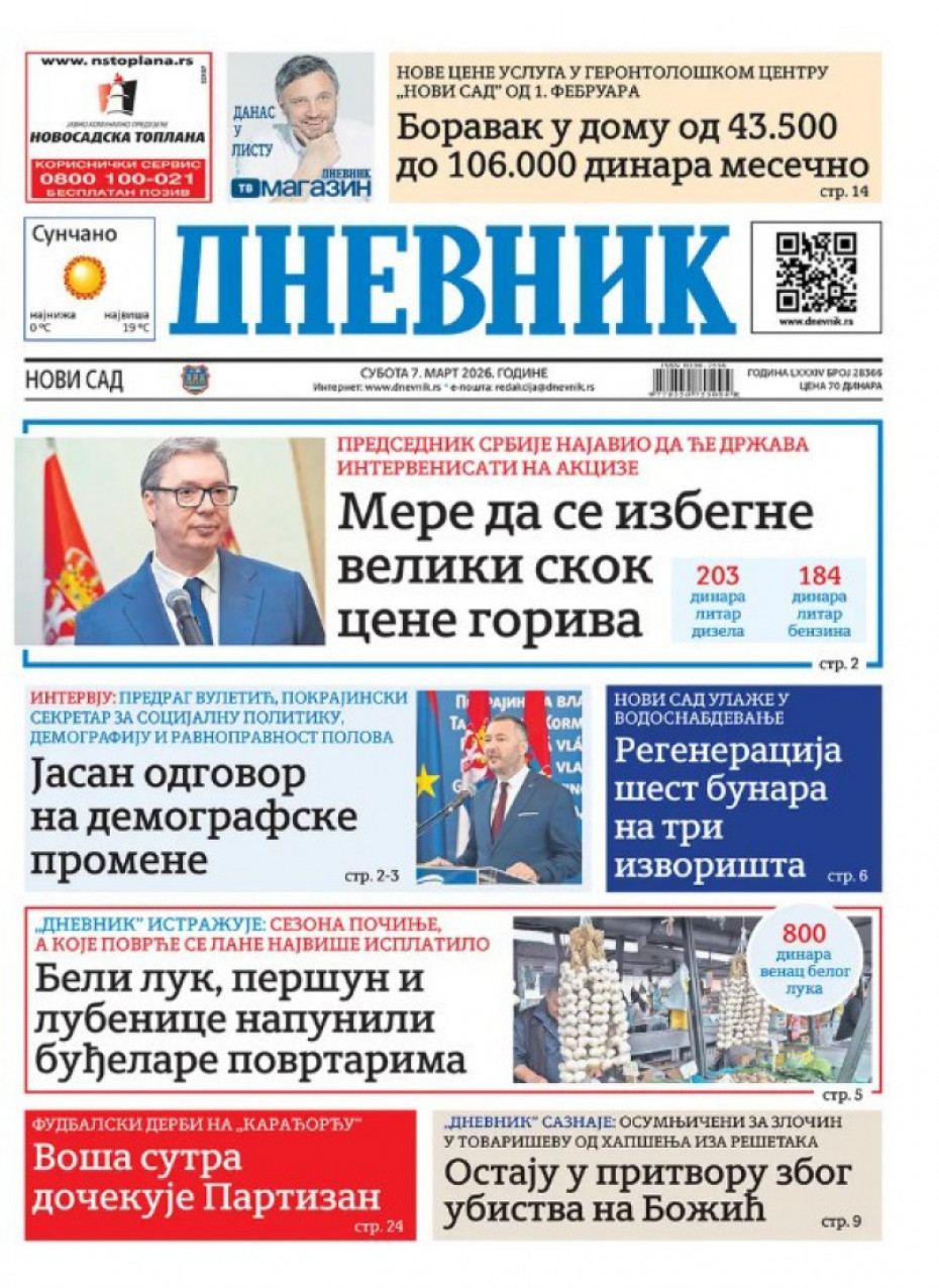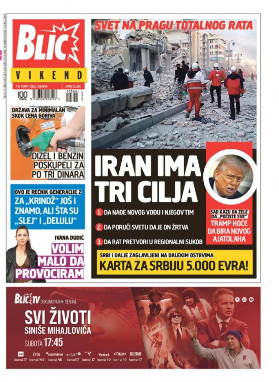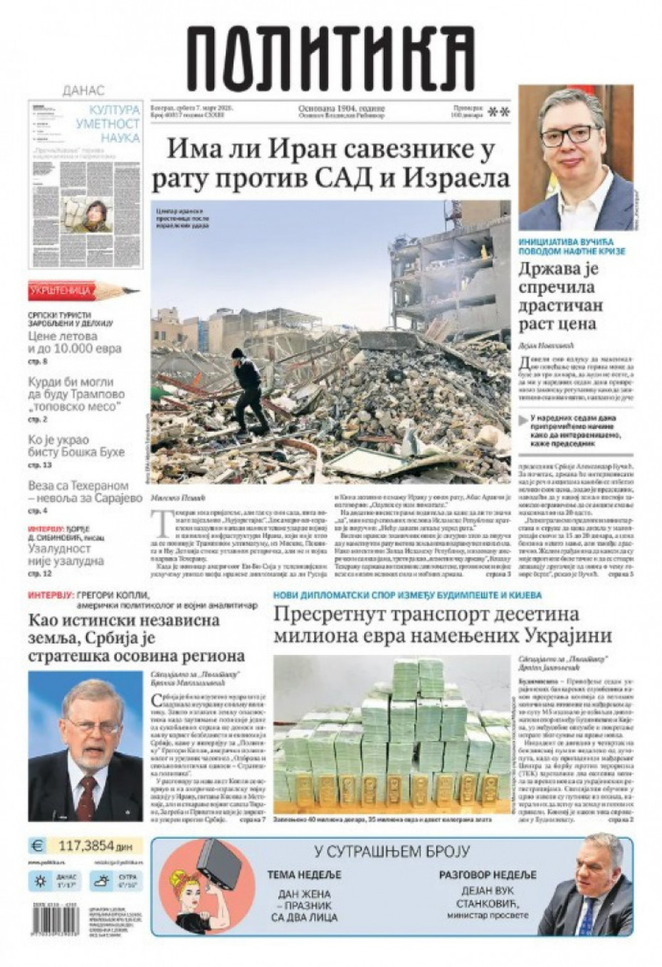 Naslovna Srbija Politika Politika Naslovne strane dnevne štampe za subotu, 7. mart Komentari Naslovne strane dnevne štampe za subotu, 7. mart - Copyright Profimedia, Logo Autor: Euronews Srbija 06/03/2026 - 20:50 Podeli veličina teksta Aa Aa Pogledajte šta na naslovnim stranama donose dnevne novine u Srbiji u izdanju za subotu, 7. mart Promo Pogledaj galeriju Promo Pogledaj galeriju Promo Pogledaj galeriju Promo Pogledaj galeriju Promo Pogledaj galeriju Promo Pogledaj galeriju Promo Pogledaj galeriju Promo Pogledaj galeriju Više o... Dnevna štampa Naslovne strane Sutrašnje naslovnice Naslovne strane sutrašnjih novina Top tagovi Euronews Montenegro Kosovo i Metohija Rat u Ukrajini Kriza na Bliskom istoku
