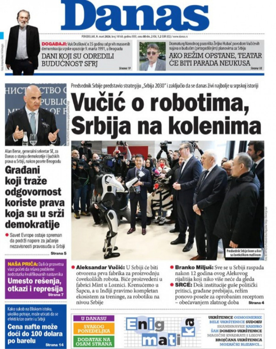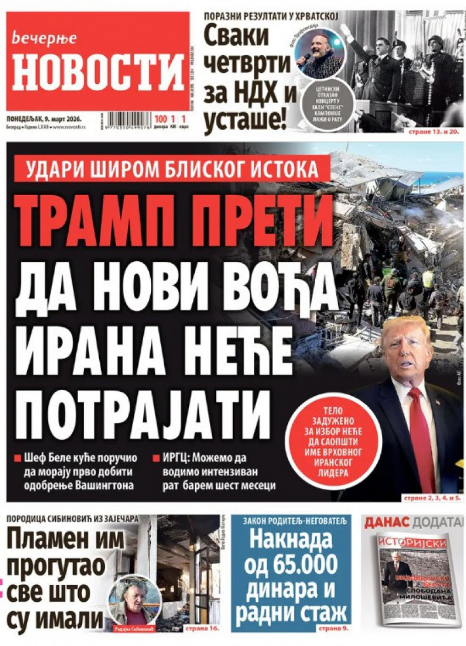 Naslovne strane dnevne štampe za ponedeljak, 9. mart