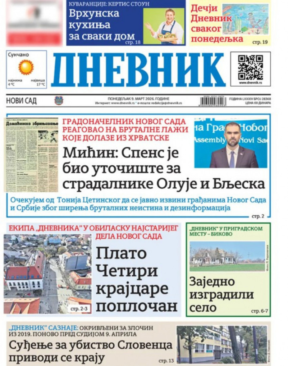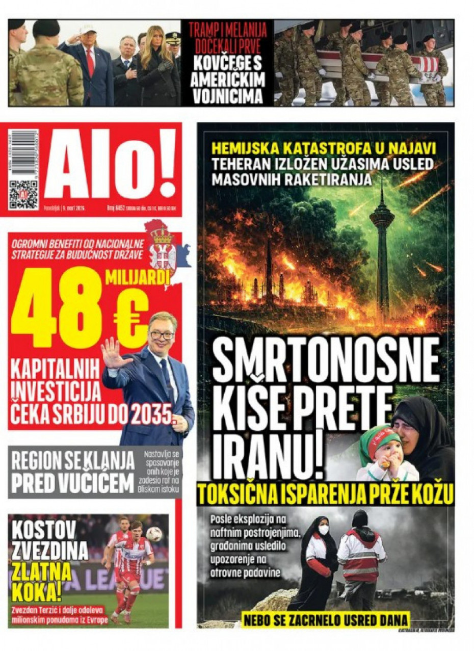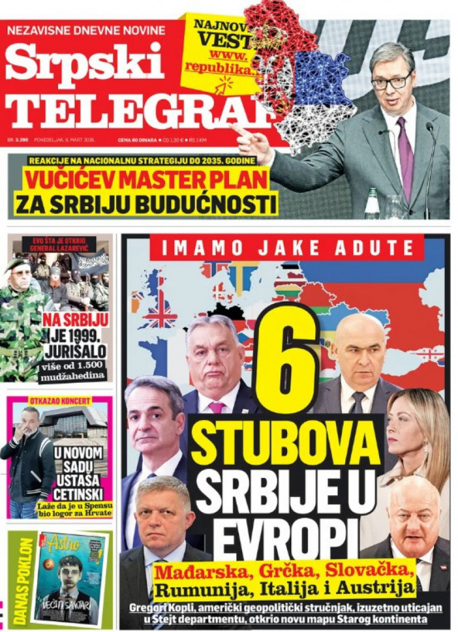 Pogledajte šta na naslovnim stranama donose dnevne novine u Srbiji u izdanju za ponedeljak, 9. mart
