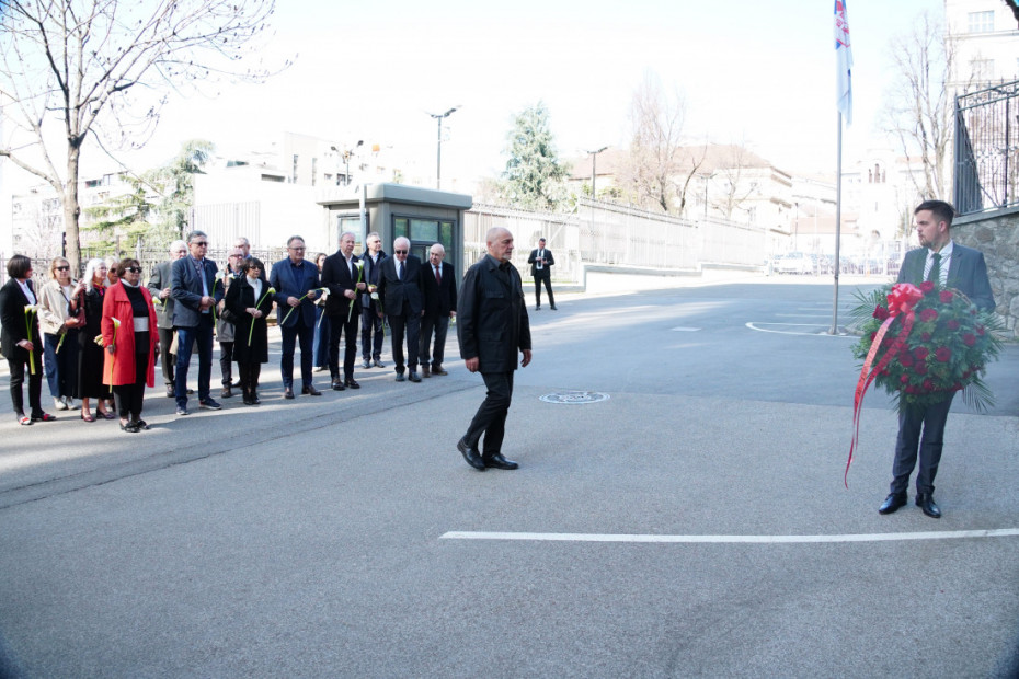 Ranije danas premijer Đuro Macut sa ministrima položio je venac u dvorištu Vlade Srbije, na mestu gde je Đinđić ubijen.