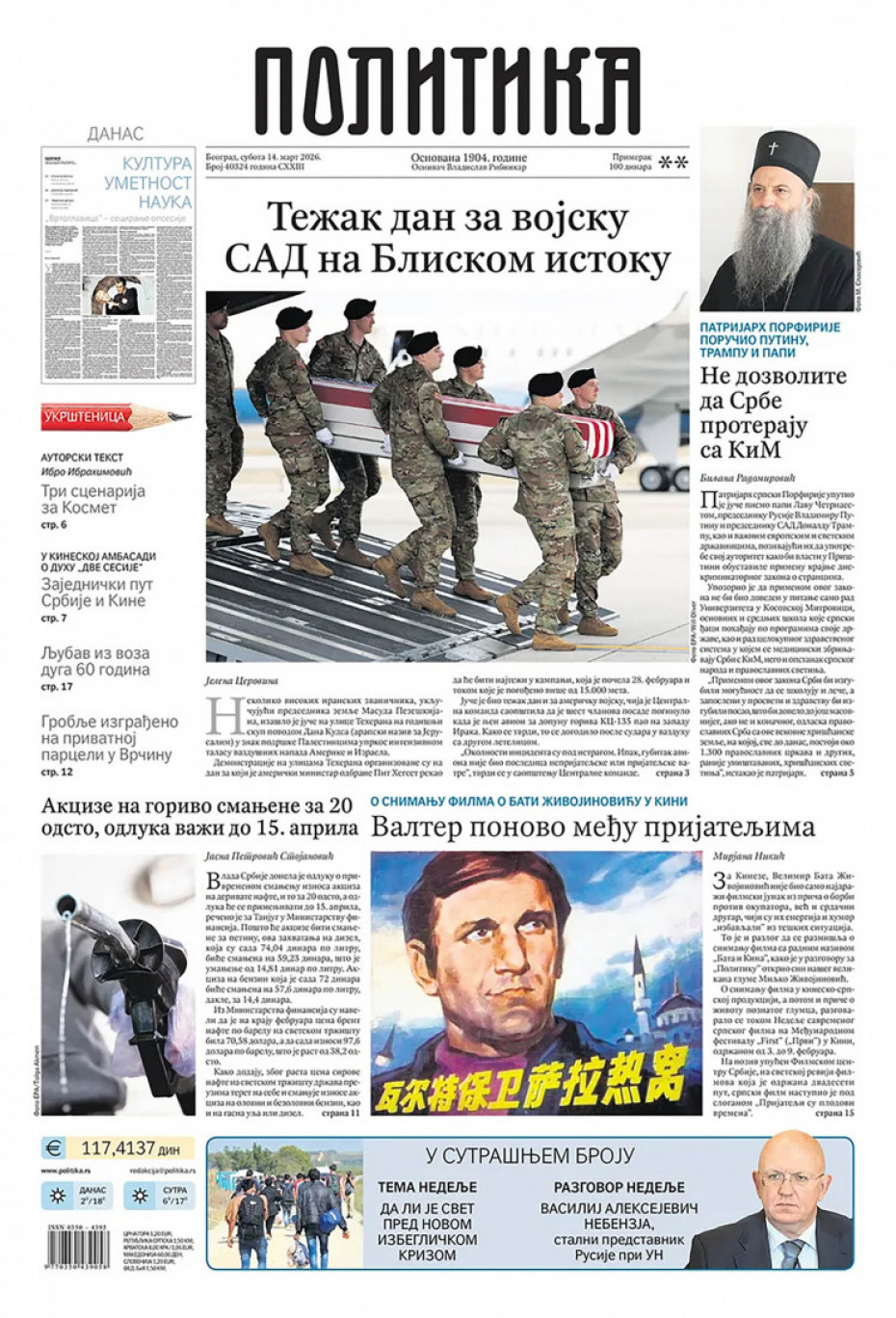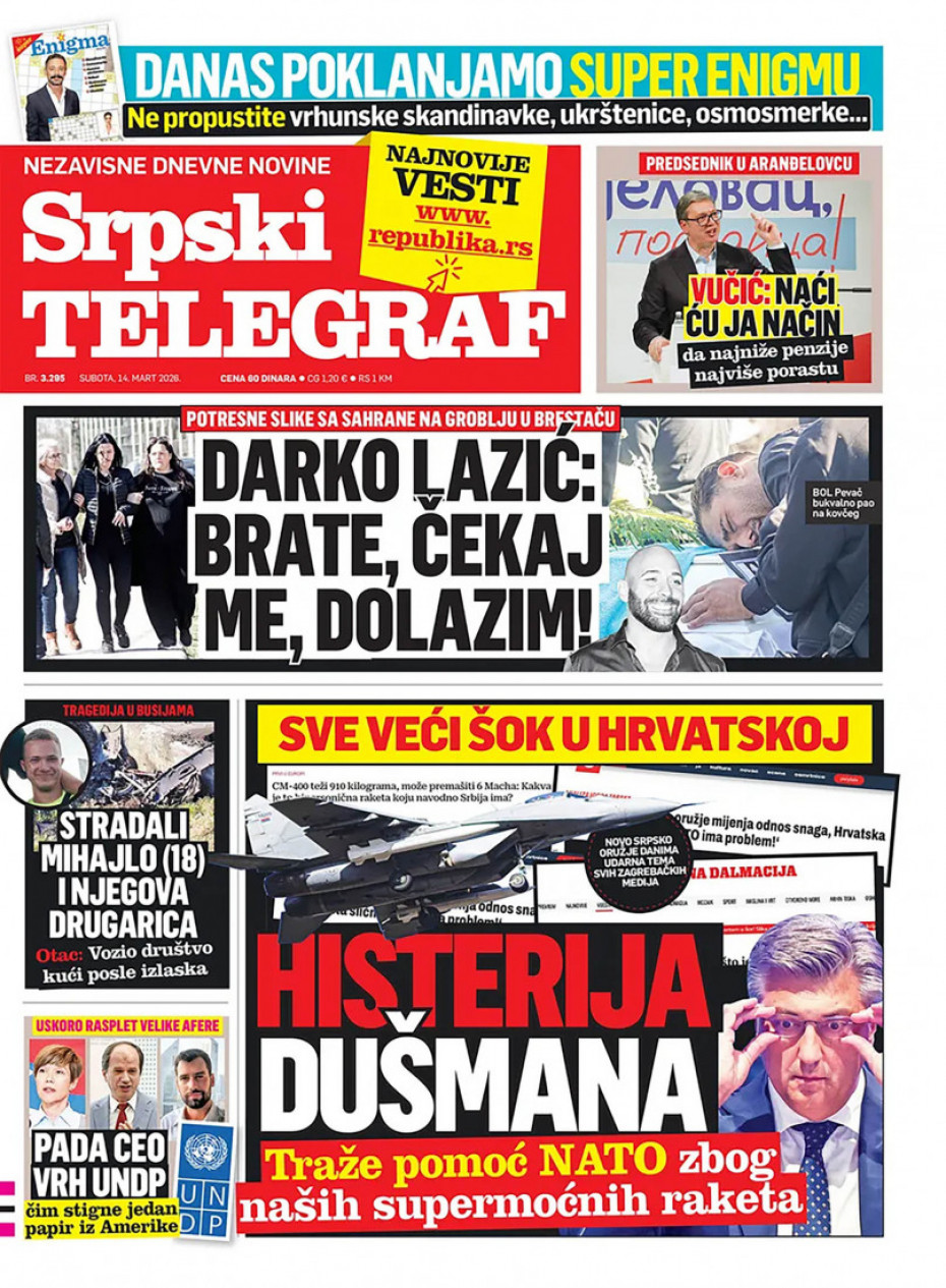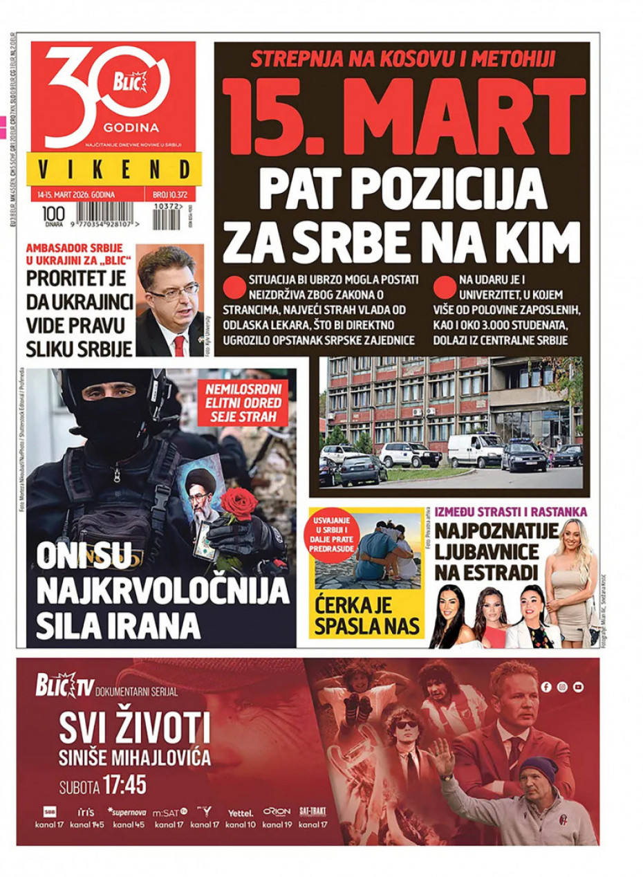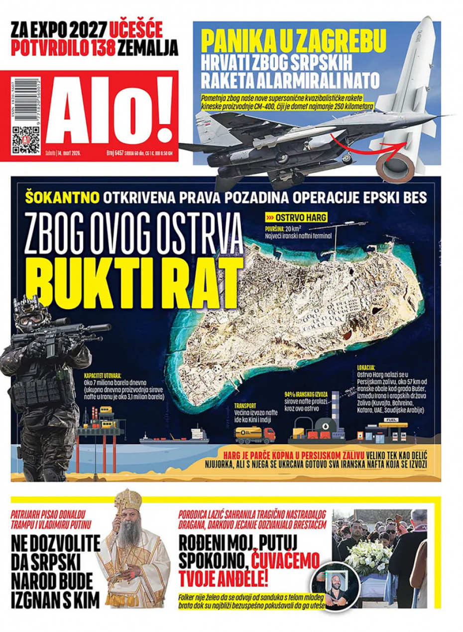 Naslovna Srbija Politika Politika Naslovne strane dnevne štampe za subota, 14. mart Komentari Naslovne strane dnevne štampe za subota, 14. mart - Copyright Profimedia, Logo Autor: Euronews Srbija 13/03/2026 - 20:41 Podeli veličina teksta Aa Aa Pogledajte šta na naslovnim stranama donose dnevne novine u Srbiji u izdanju za subotu, 14. mart. Promo Pogledaj galeriju Promo Pogledaj galeriju Promo Pogledaj galeriju Promo Pogledaj galeriju Promo Pogledaj galeriju Promo Pogledaj galeriju Promo Pogledaj galeriju Promo Pogledaj galeriju Promo Pogledaj galeriju Više o... Naslovne strane Dnvena štampa Novine Naslovne strane dnevne štampe Top tagovi Euronews Montenegro Kosovo i Metohija Rat u Ukrajini Kriza na Bliskom istoku
