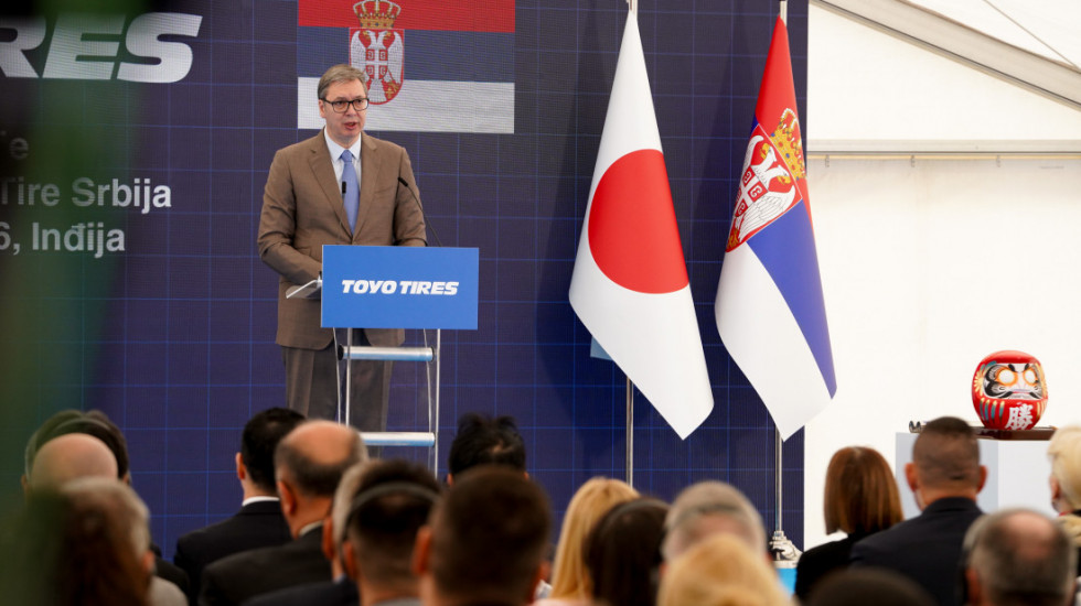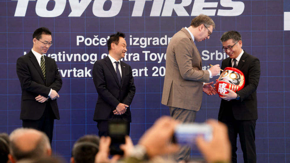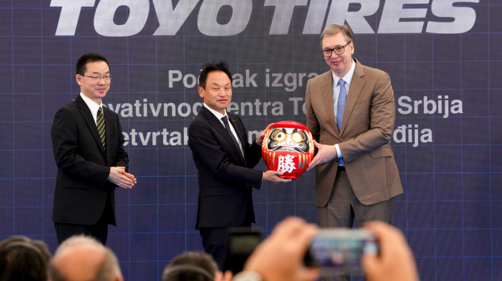 Predsednik Aleksandar Vučić izjavio je na ceremoniji obeležavanja početka radova na izgradnji Centra za inovacije u Srbiji japanskog proizvođača automobilskih guma Tojo Tajer (Toyo Tire) u Inđiji da se danas postavlja kamen temeljac i za zajedničku viziju budućnosti Srbije i Japana, kao i da ta investicija dokazuje da je Srbija strateški centar iz kojeg mogu da se osvajaju tržišta različitih delova sveta.