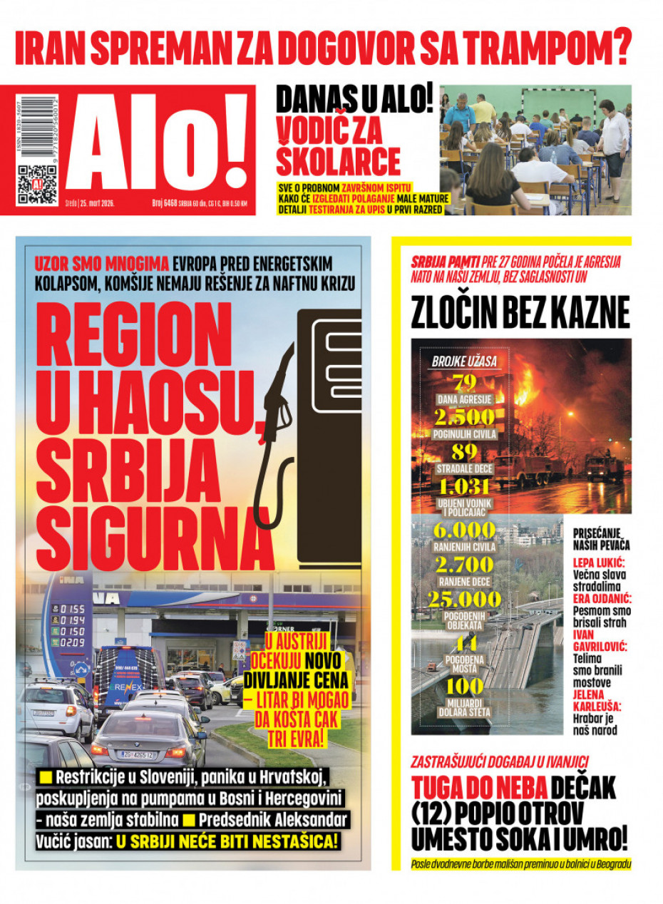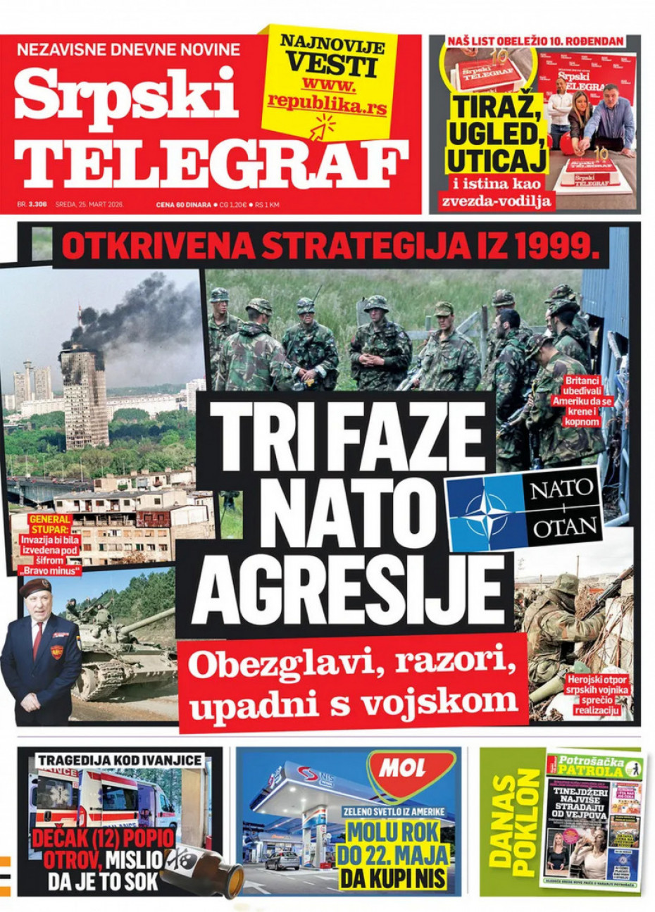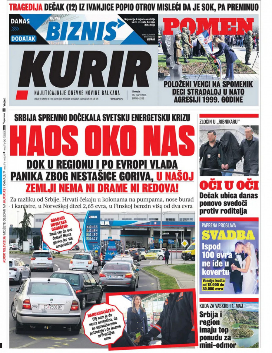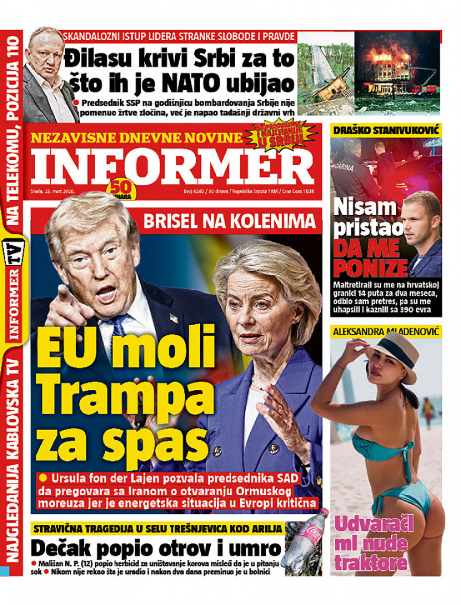 Pogledajte šta na naslovnim stranama donose dnevne novine u Srbiji u izdanju za sredu, 25. mart