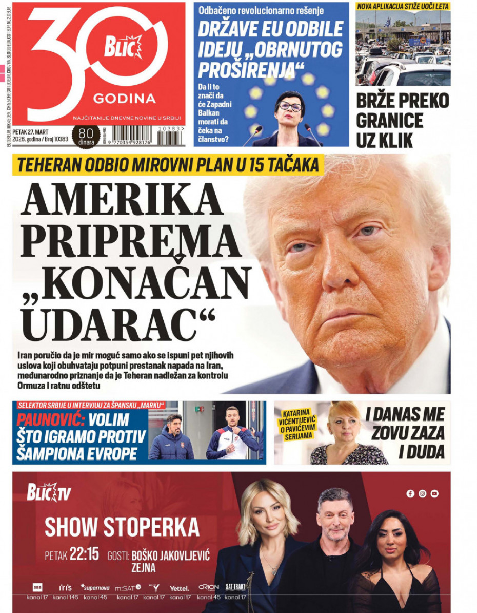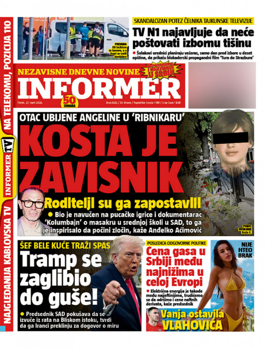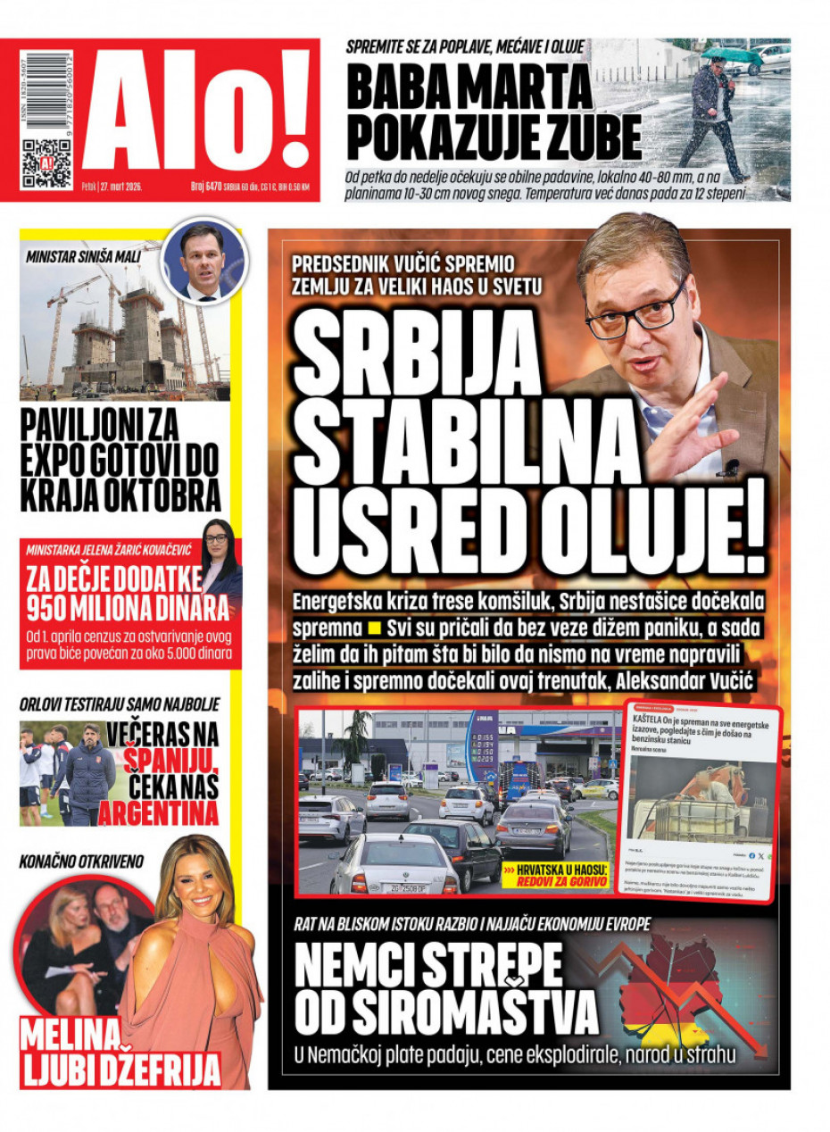Pogledajte šta na naslovnim stranama donose dnevne novine u Srbiji u izdanju za petak, 27. mart