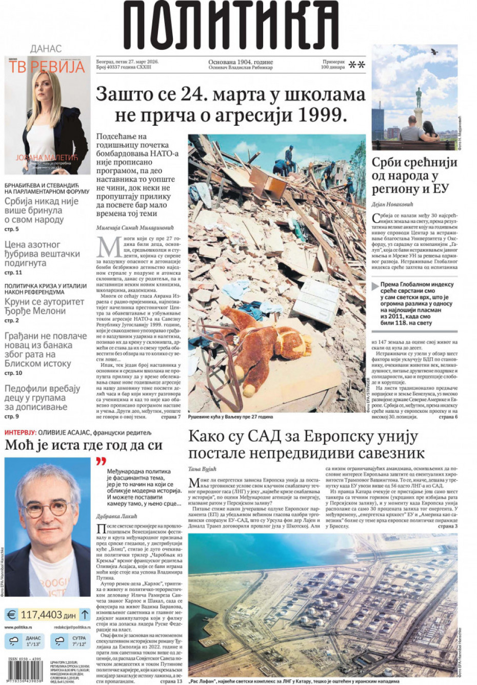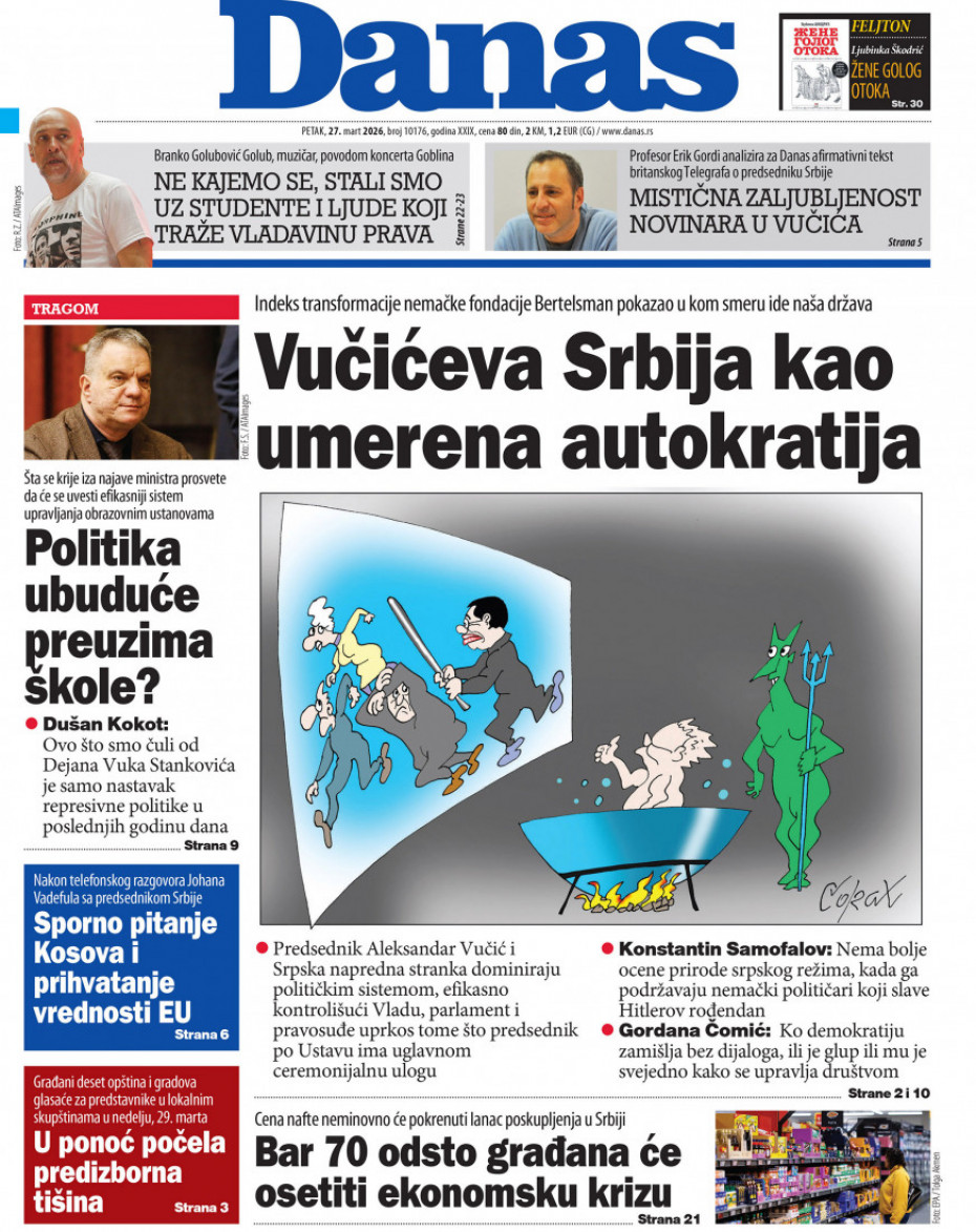 Naslovne strane dnevne štampe za petak, 27. mart