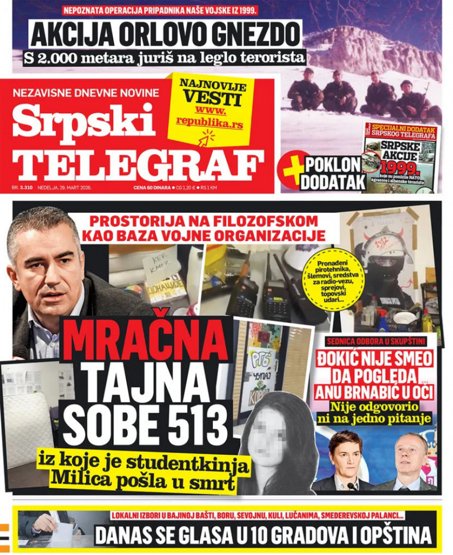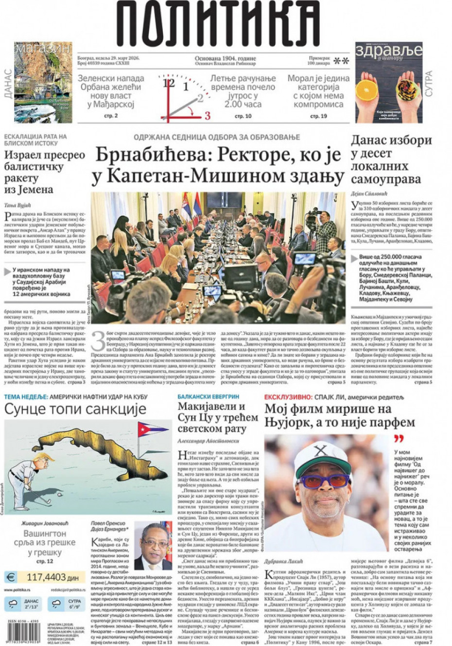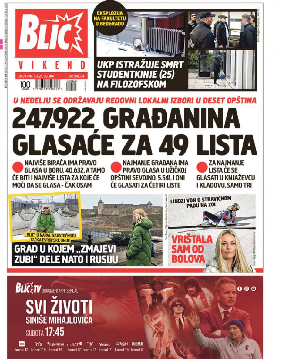 Naslovna Srbija Politika Politika Naslovne strane dnevne štampe za nedelju, 29. mart Komentari Naslovne strane dnevne štampe za nedelju, 29. mart - Copyright Profimedia, Logo Autor: Euronews Srbija 28/03/2026 - 20:42 Podeli veličina teksta Aa Aa Pogledajte šta na naslovnim stranama donose dnevne novine u Srbiji u izdanju za nedelju, 29. mart Promo Pogledaj galeriju Promo Pogledaj galeriju Promo Pogledaj galeriju Promo Pogledaj galeriju Promo Pogledaj galeriju Promo Pogledaj galeriju Promo Pogledaj galeriju Promo Pogledaj galeriju Promo Pogledaj galeriju Više o... Naslovne strane Dnevne novine Srbija Naslovne strane za nedelju 29.mart Top tagovi Euronews Montenegro Kosovo i Metohija Rat u Ukrajini Kriza na Bliskom istoku
