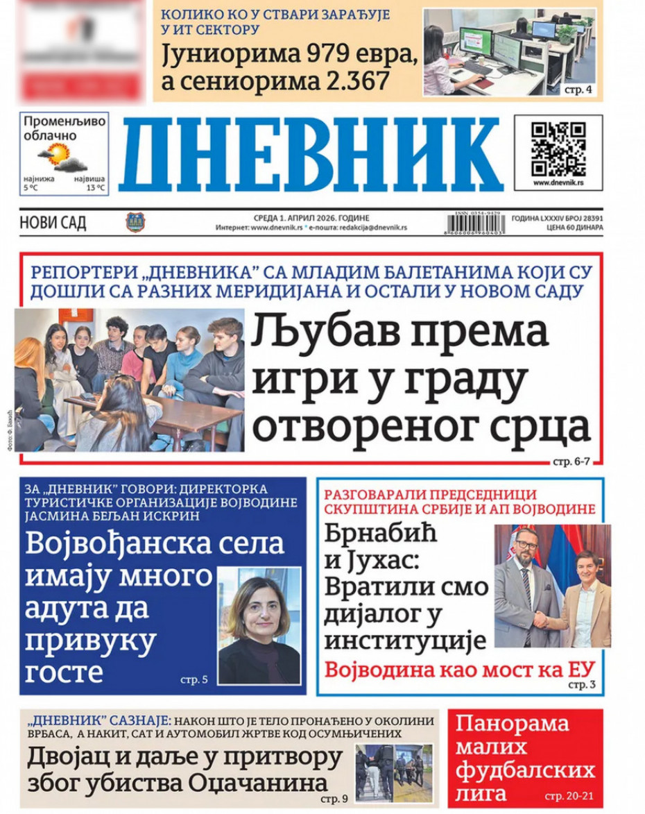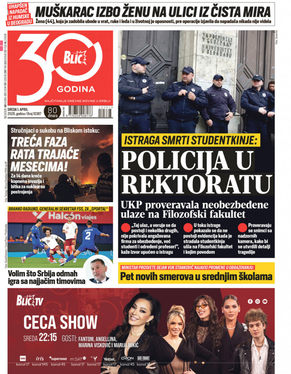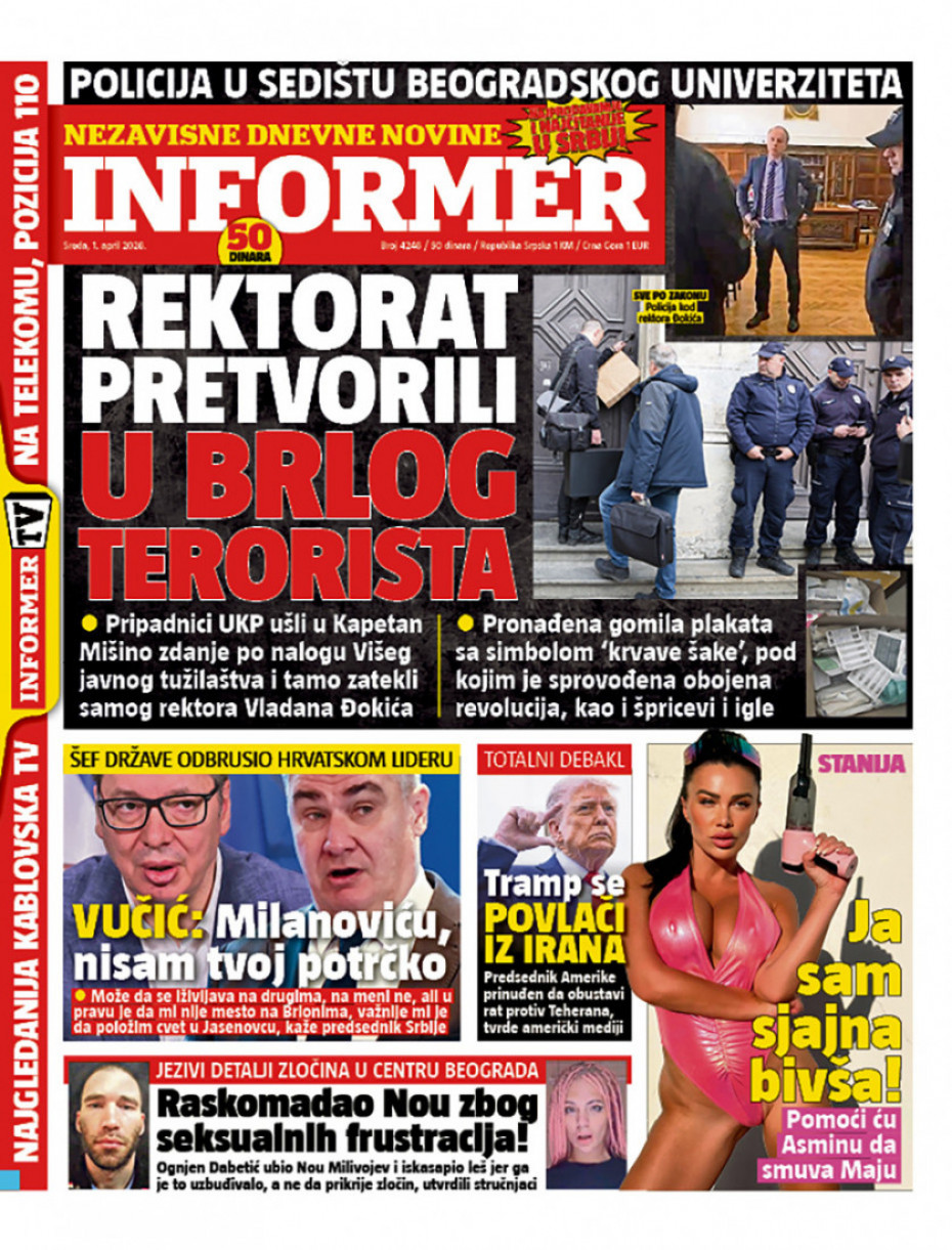 Pogledajte šta na naslovnim stranama donose dnevne novine u Srbiji u izdanju za sredu, 1. april