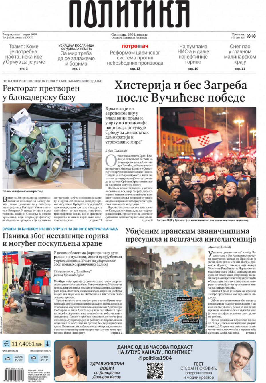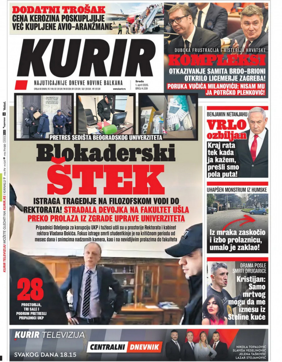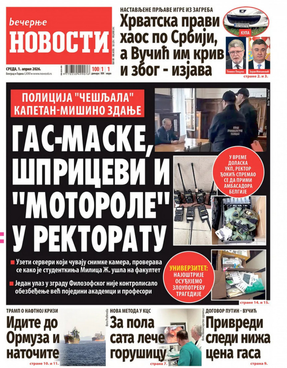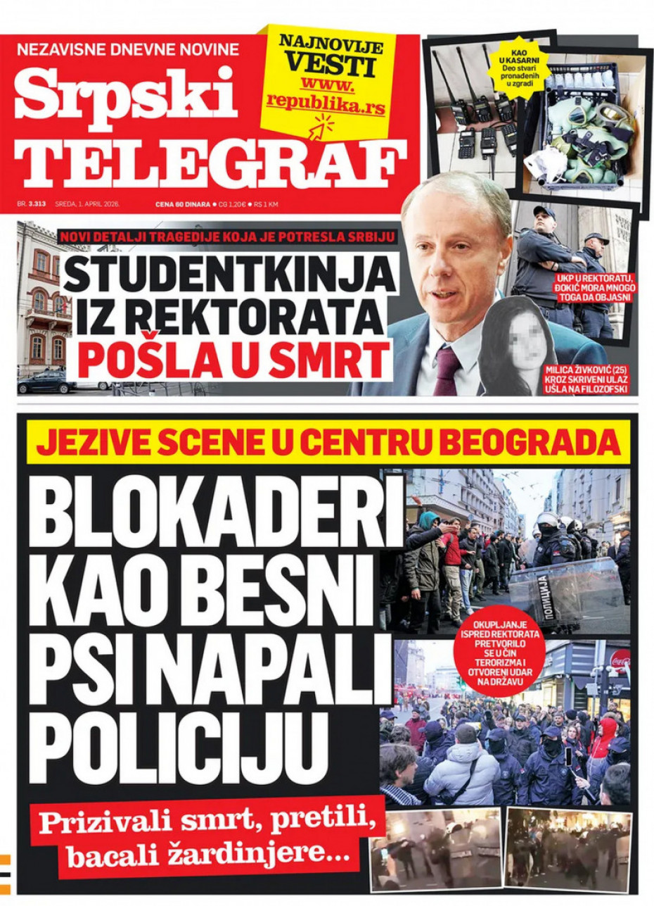 Naslovne strane dnevne štampe za sredu, 1. april