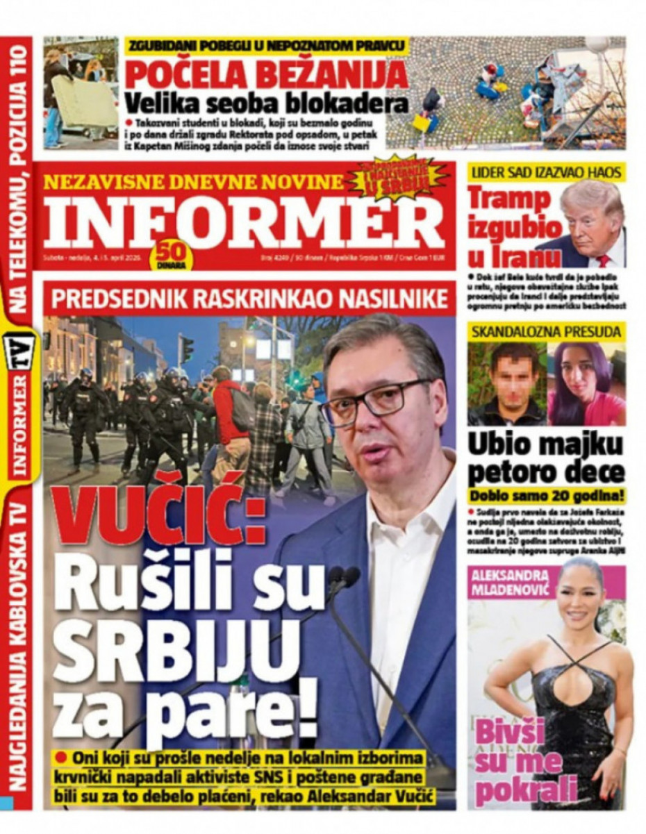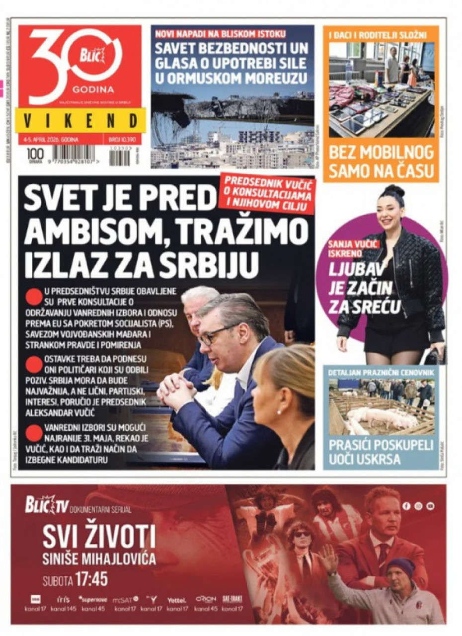 Pogledajte šta na naslovnim stranama donose dnevne novine u Srbiji u izdanju za nedelju, 5. april