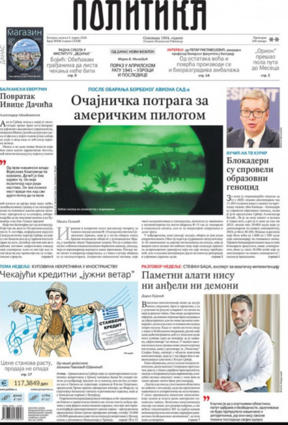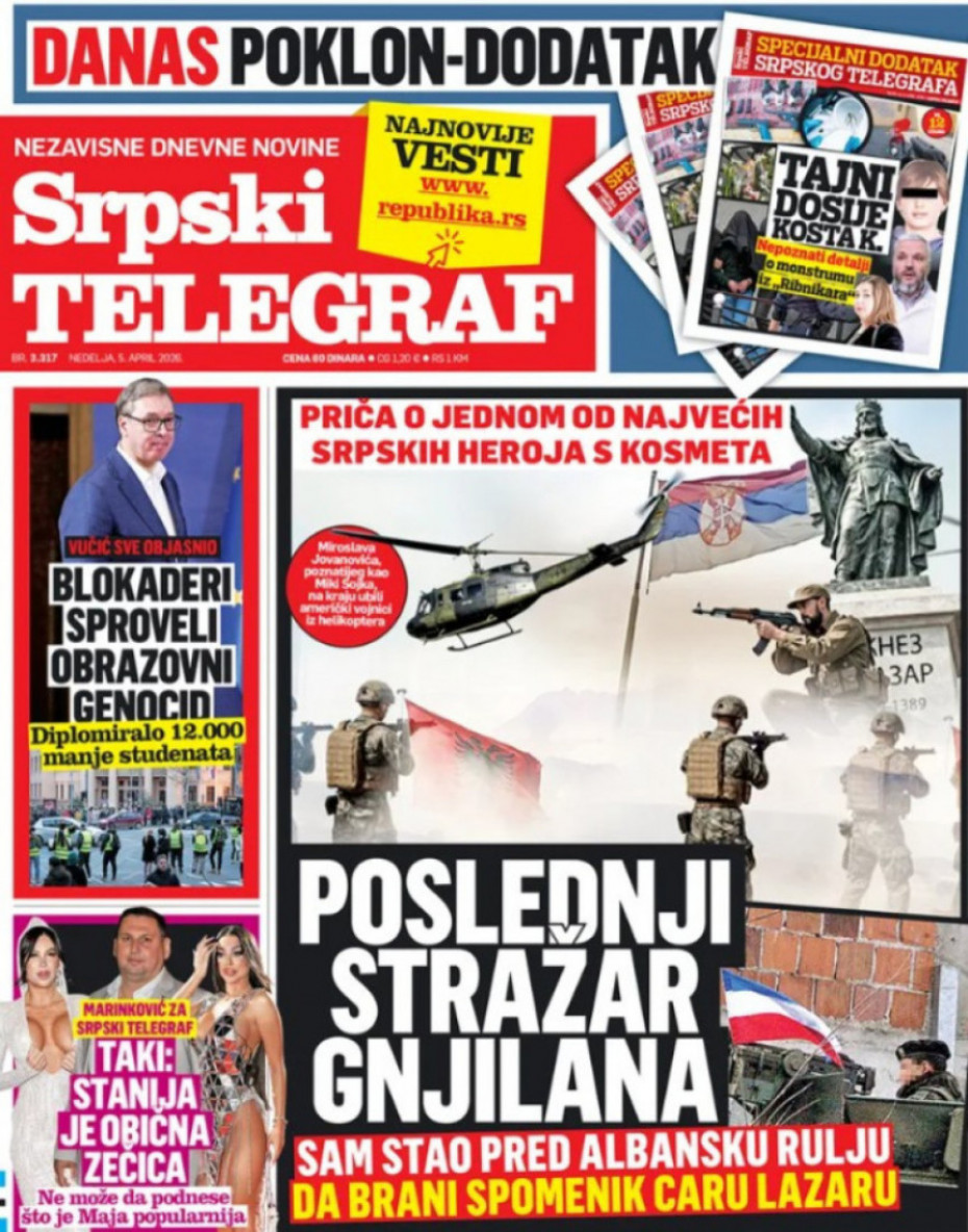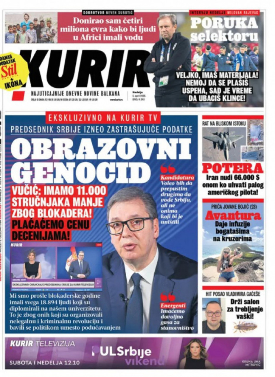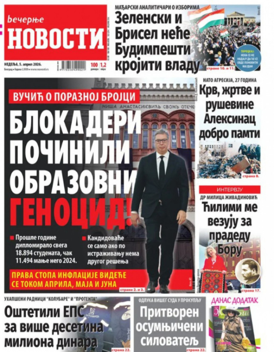 Naslovne strane dnevne štampe za nedelju, 5. april