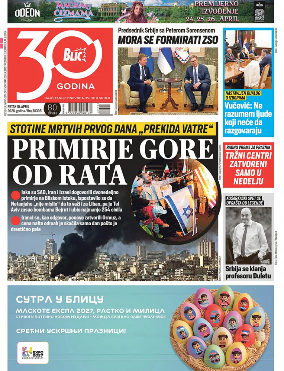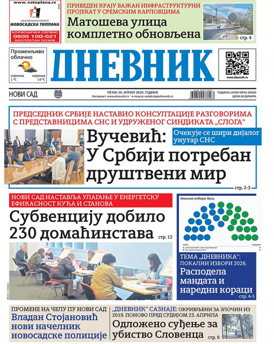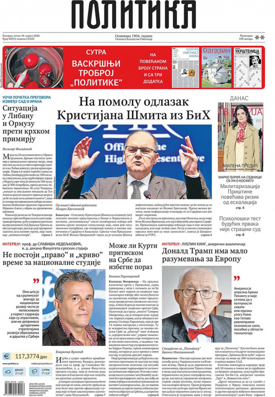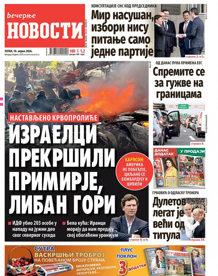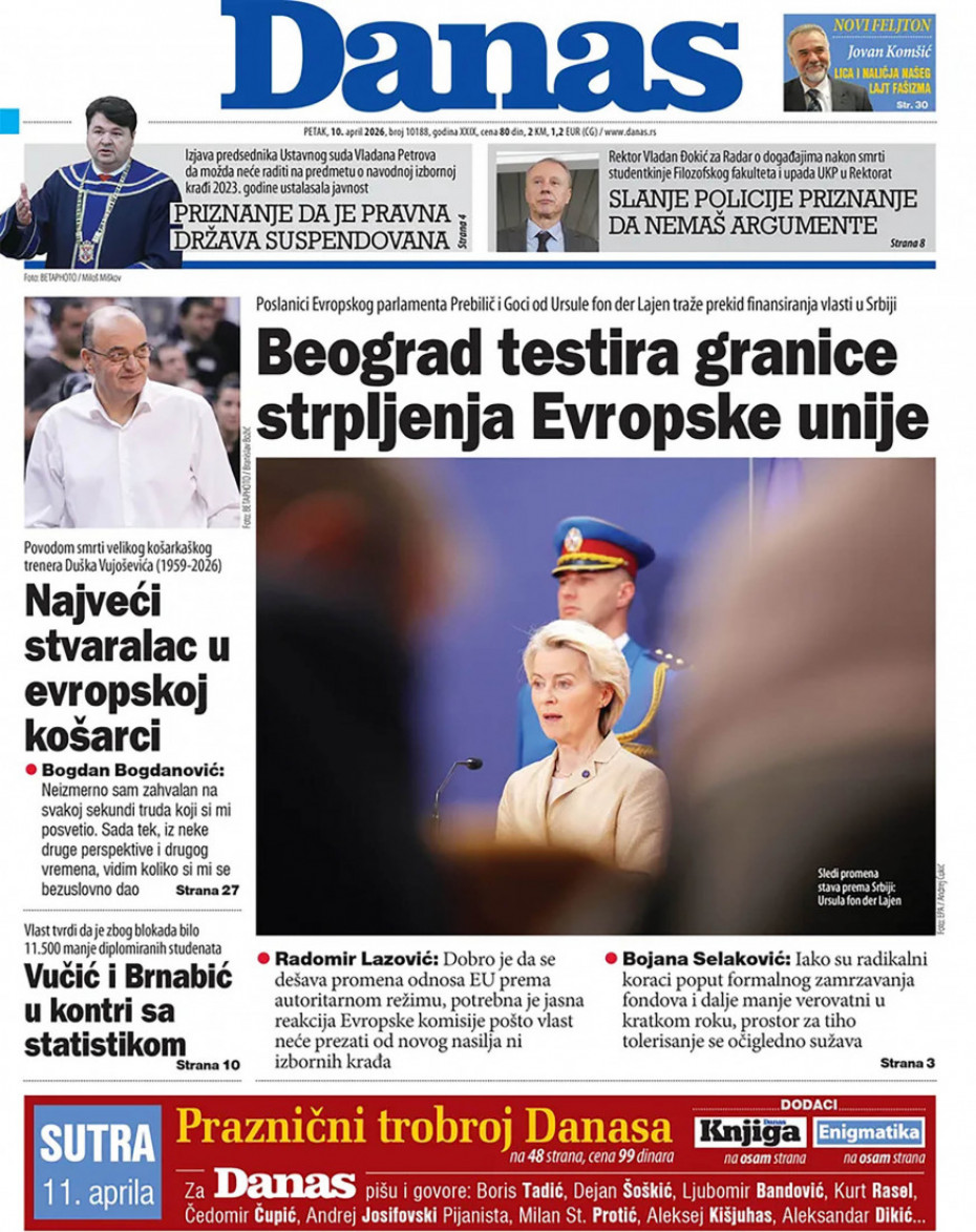 Pogledajte šta na naslovnim stranama donose dnevne novine u Srbiji u izdanju za petak, 10. april