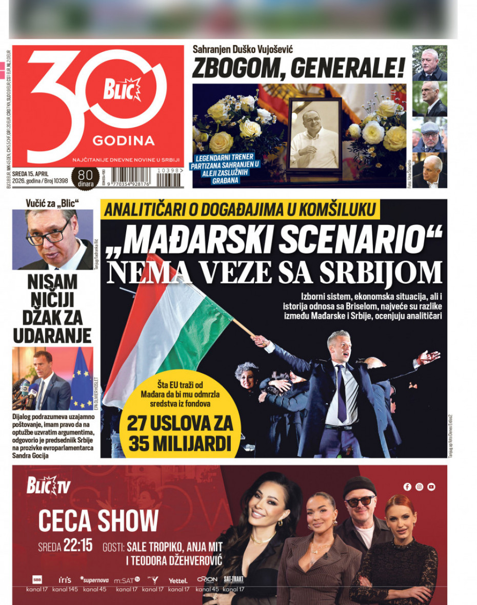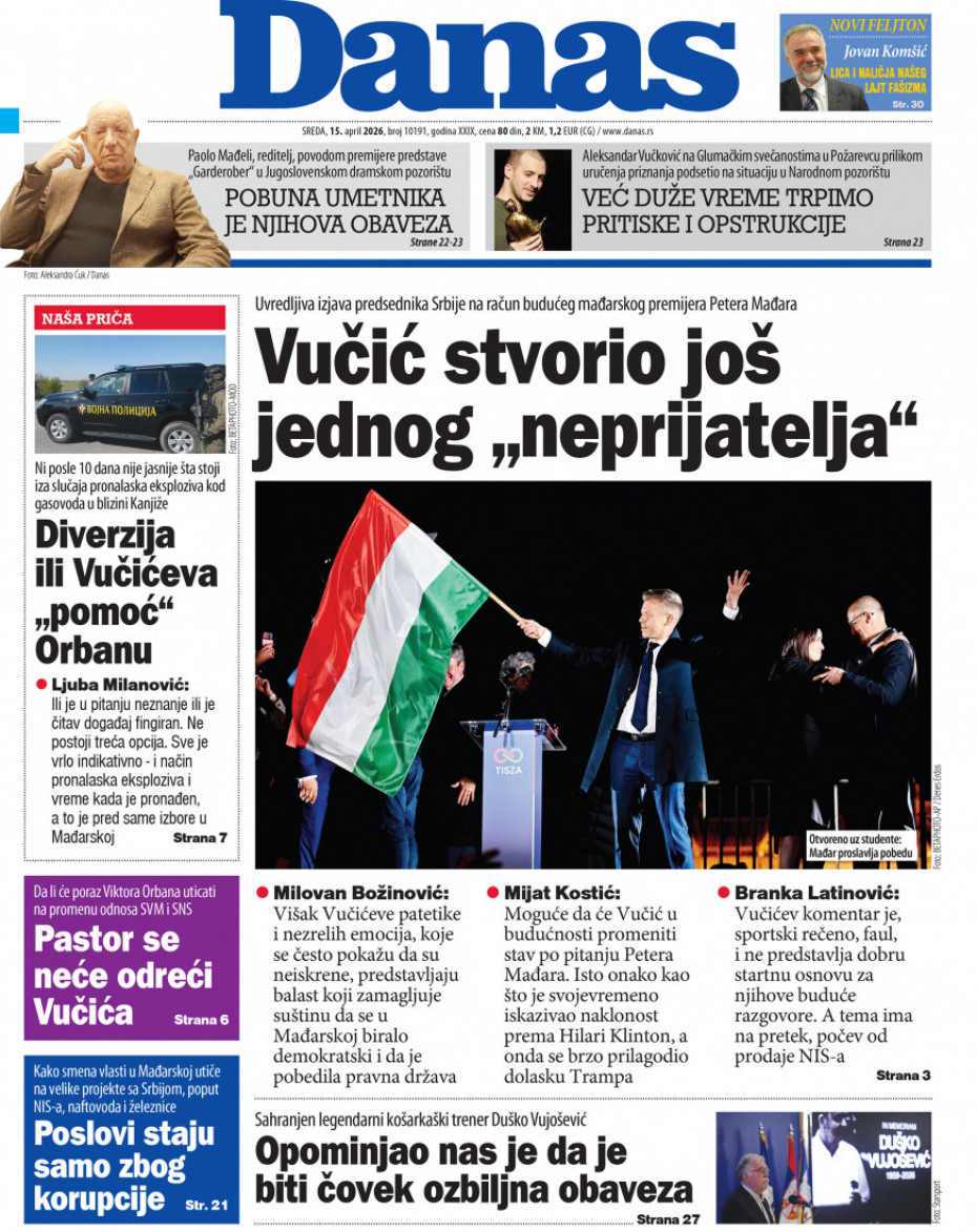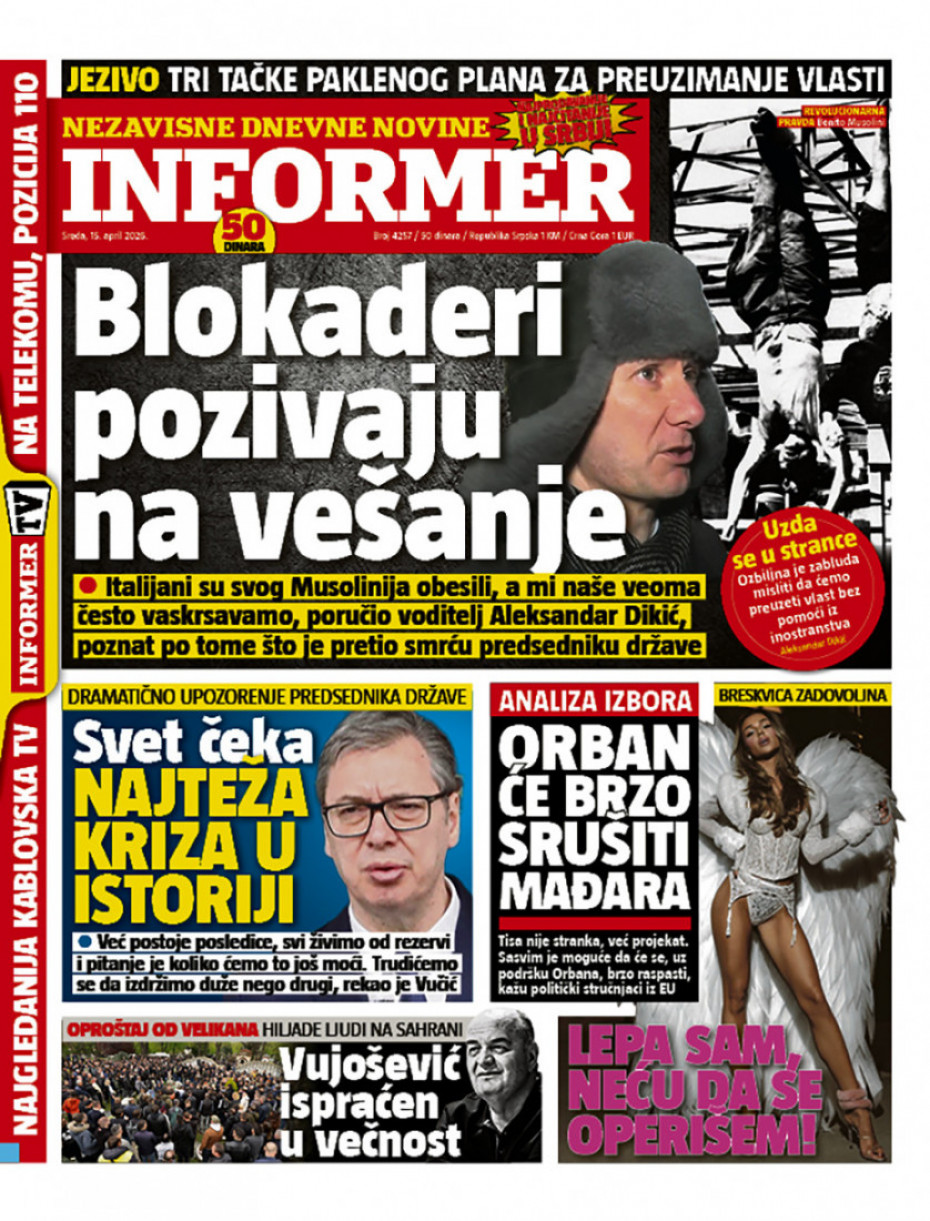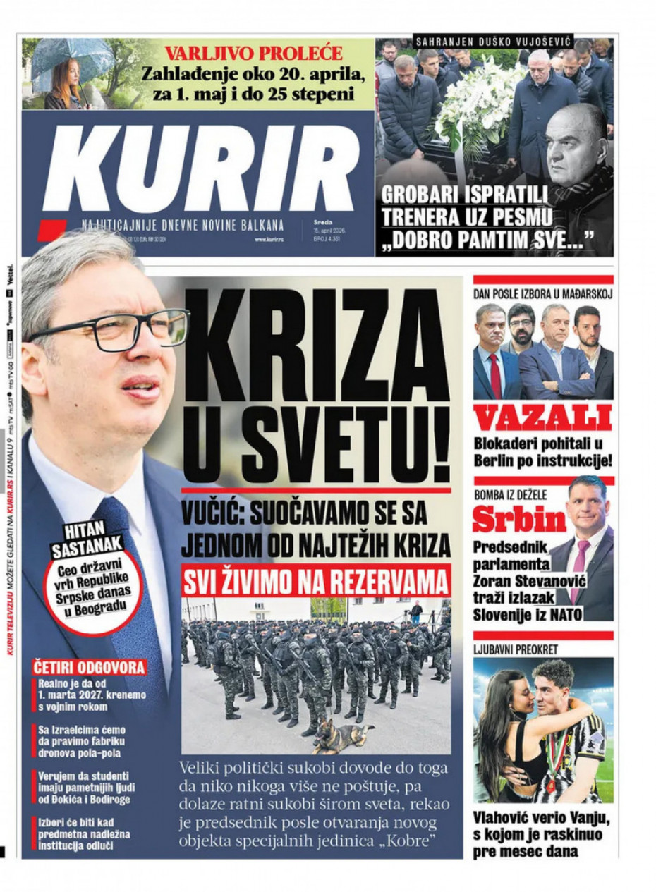 Pogledajte šta na naslovnim stranama donose dnevne novine u Srbiji u izdanju za sredu, 15. april