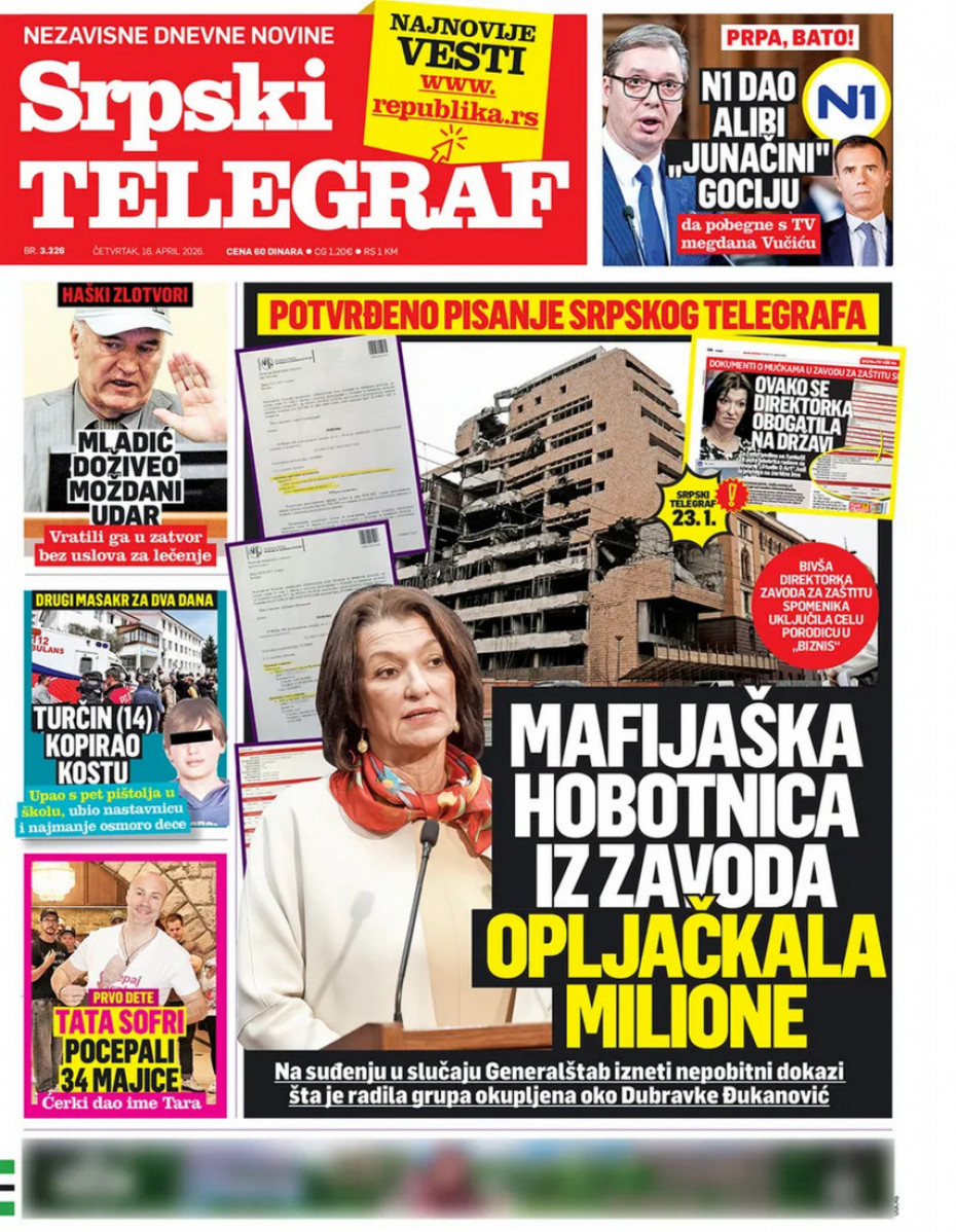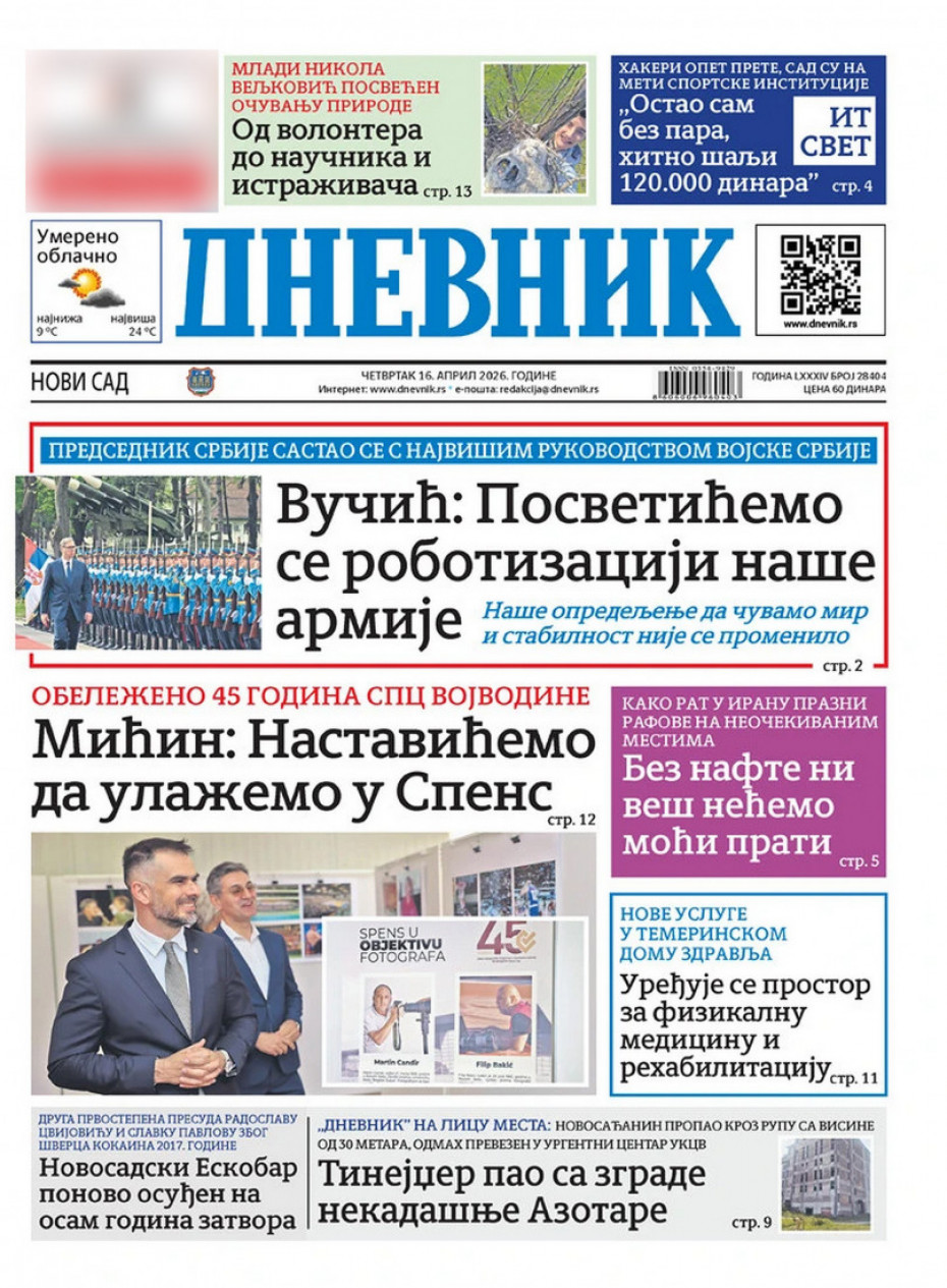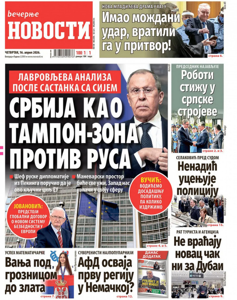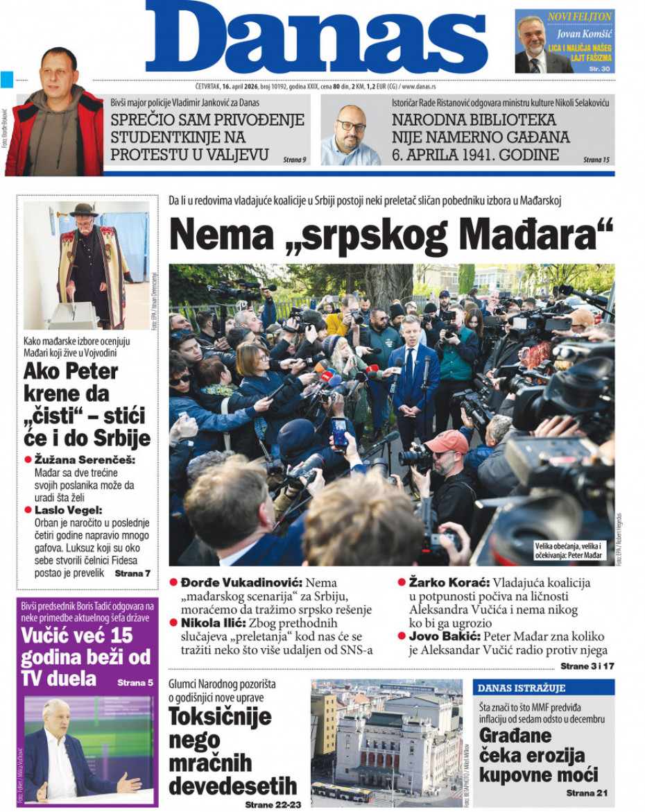 Pogledajte šta na naslovnim stranama donose dnevne novine u Srbiji u izdanju za četvrtak, 16. april