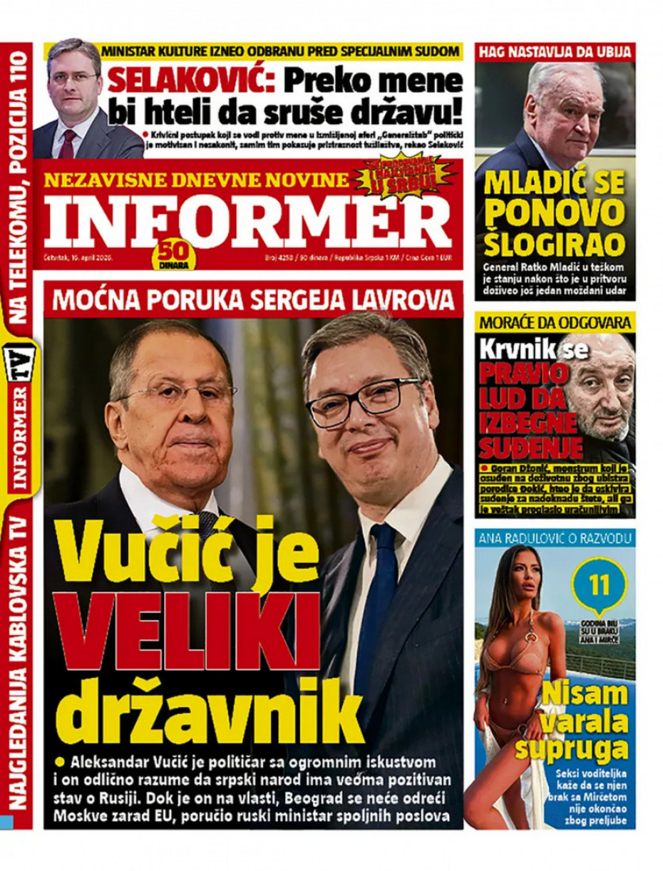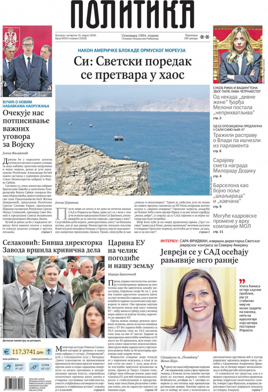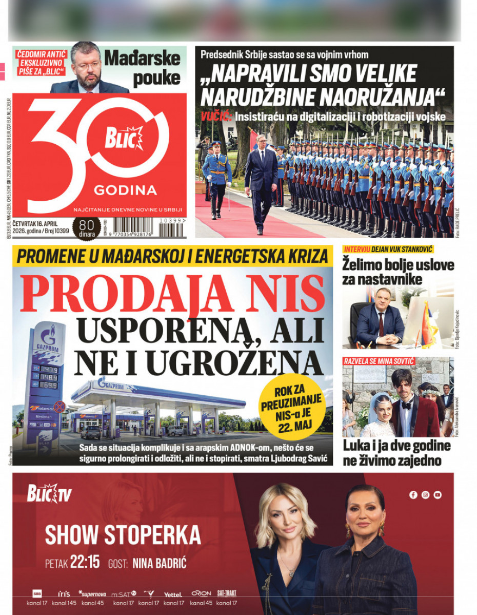 Pogledajte šta na naslovnim stranama donose dnevne novine u Srbiji u izdanju za četvrtak, 16. april