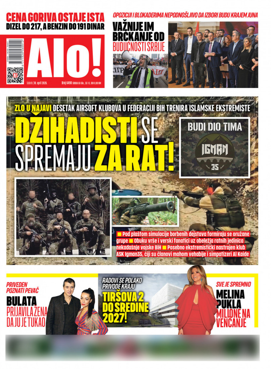 Naslovna Srbija Politika Politika Naslovne strane dnevne štampe za subotu, 18. april Komentari Naslovne strane dnevne štampe za subotu, 18. april - Copyright Profimedia, Logo Autor: Euronews Srbija 17/04/2026 - 20:23 Podeli veličina teksta Aa Aa Pogledajte šta na naslovnim stranama donose dnevne novine u Srbiji u izdanju za subotu, 18. april Promo Pogledaj galeriju Promo Pogledaj galeriju Promo Pogledaj galeriju Promo Pogledaj galeriju Promo Pogledaj galeriju Promo Pogledaj galeriju Promo Pogledaj galeriju Promo Pogledaj galeriju Više o... Naslovne strane Naslovne strane sutrašnjih novina Sutrašnje naslovnice Dnevne novine Top tagovi Euronews Montenegro Kosovo i Metohija Rat u Ukrajini Kriza na Bliskom istoku