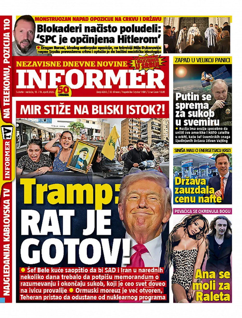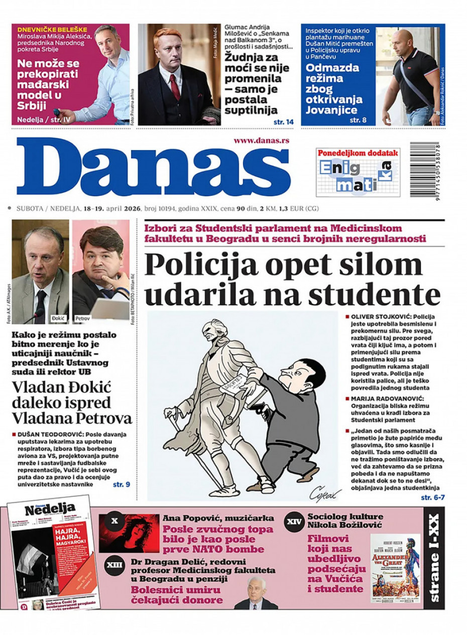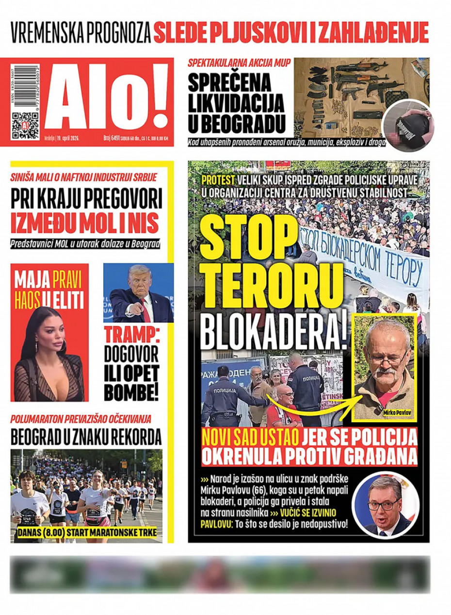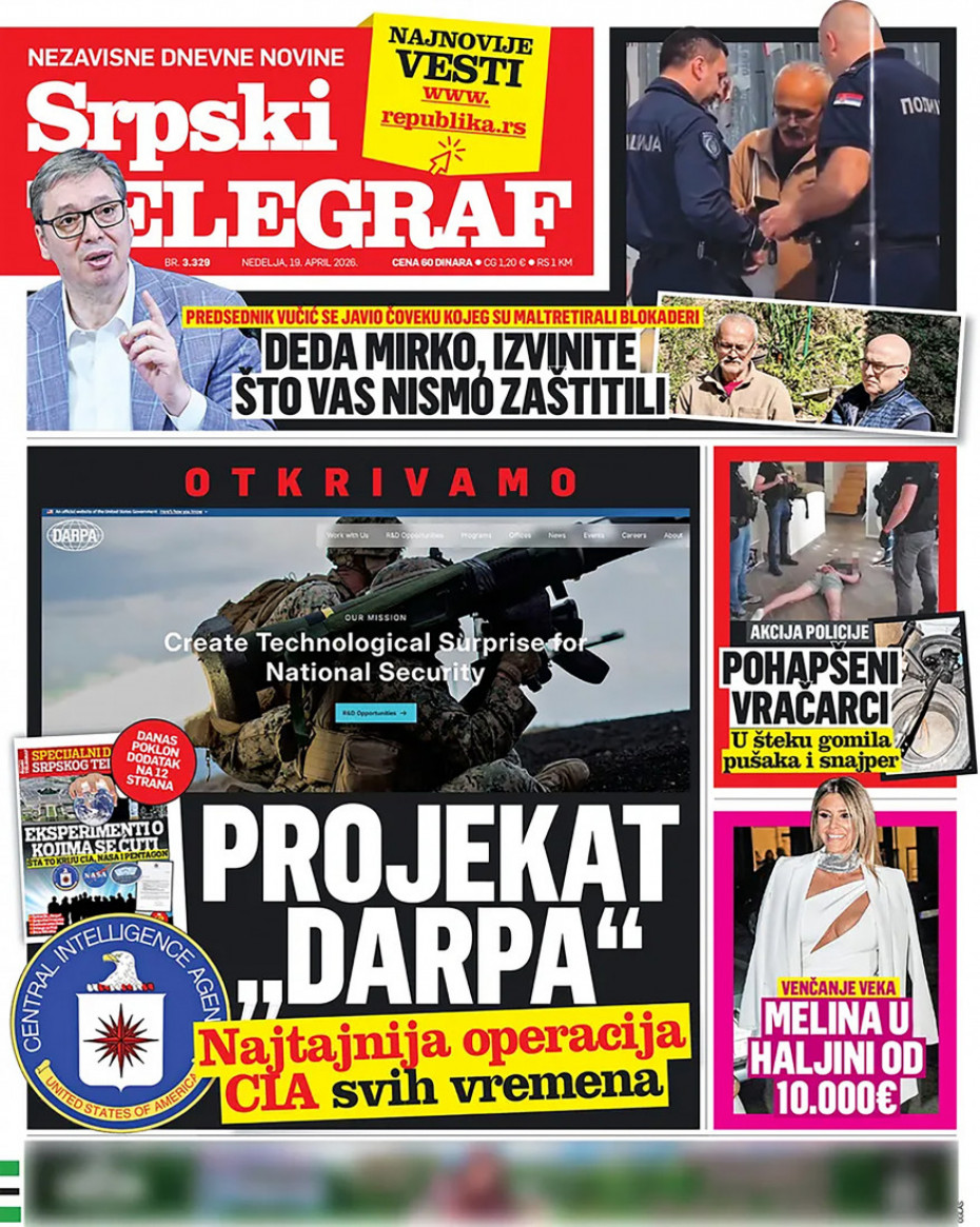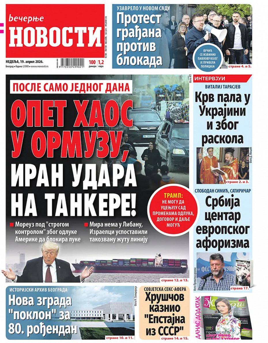 Pogledajte šta na naslovnim stranama donose dnevne novine u Srbiji u izdanju za nedelju, 19. april