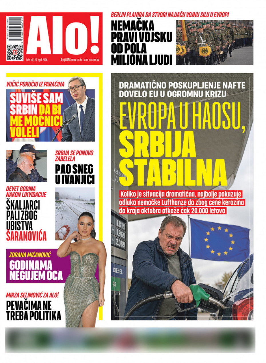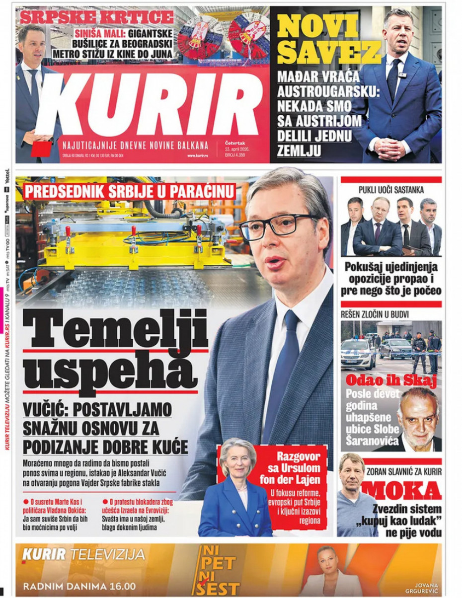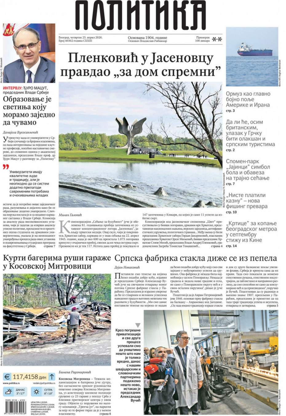 Pogledajte šta na naslovnim stranama donose dnevne novine u Srbiji u izdanju za četvrtak, 23. april