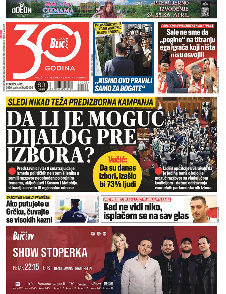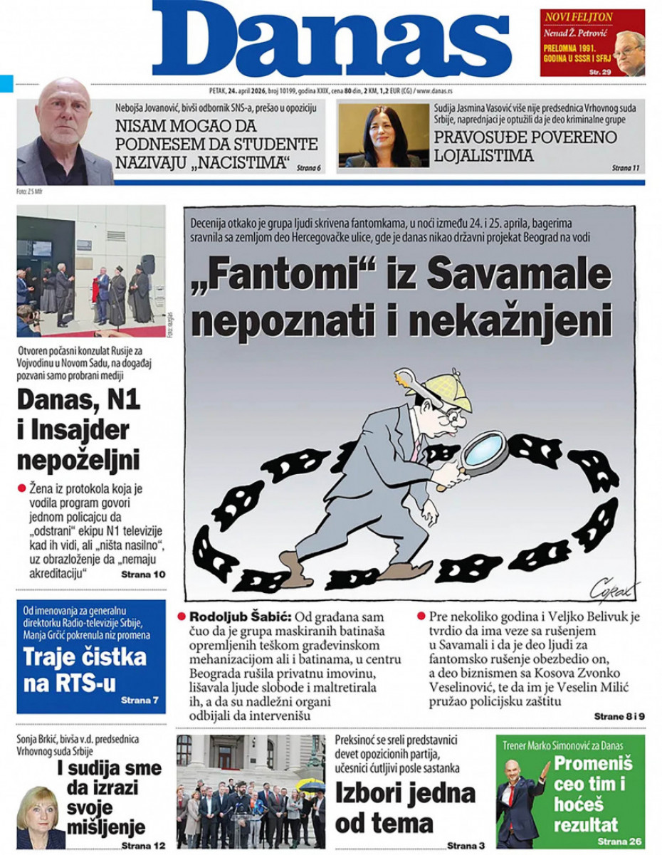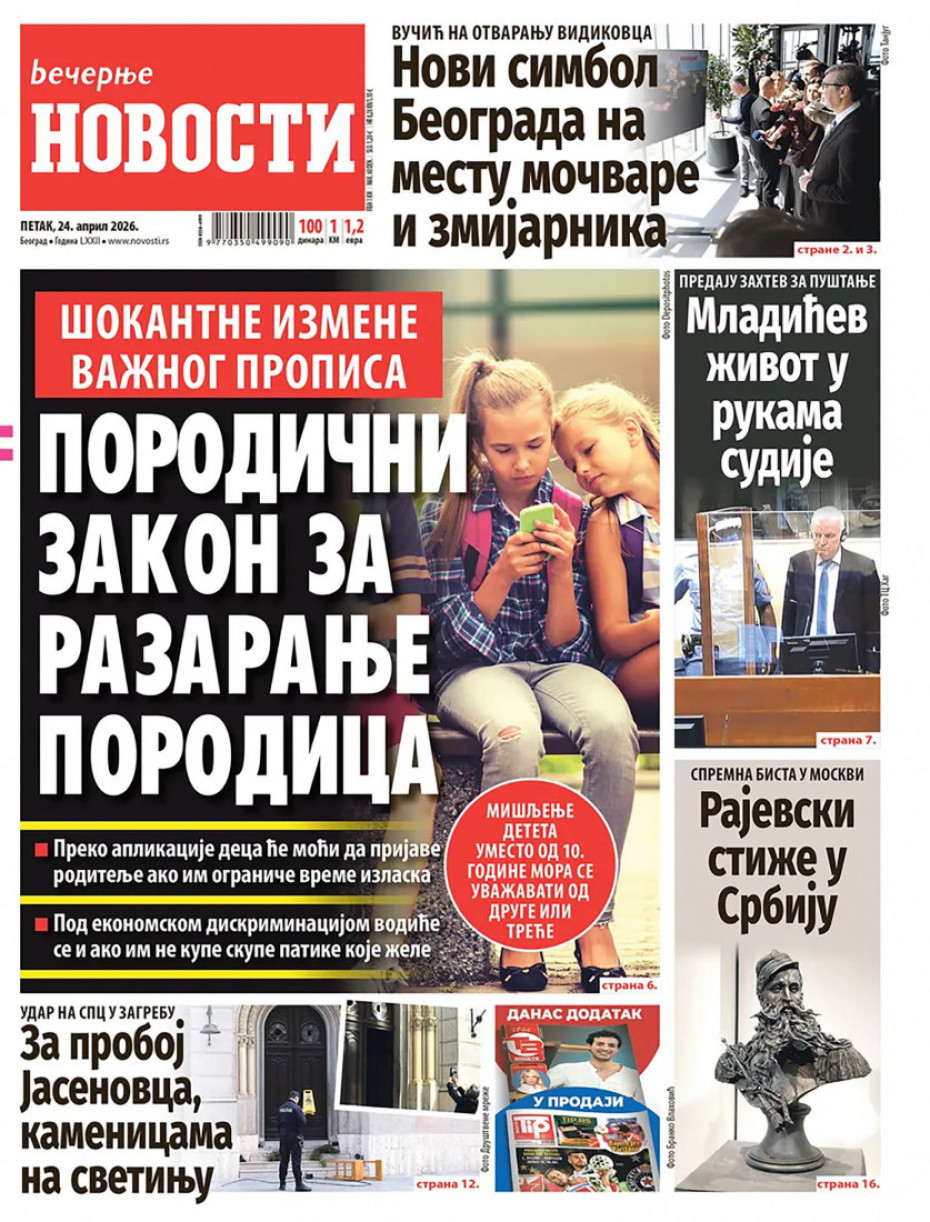Pogledajte šta na naslovnim stranama donose dnevne novine u Srbiji u izdanju za petak, 24. april