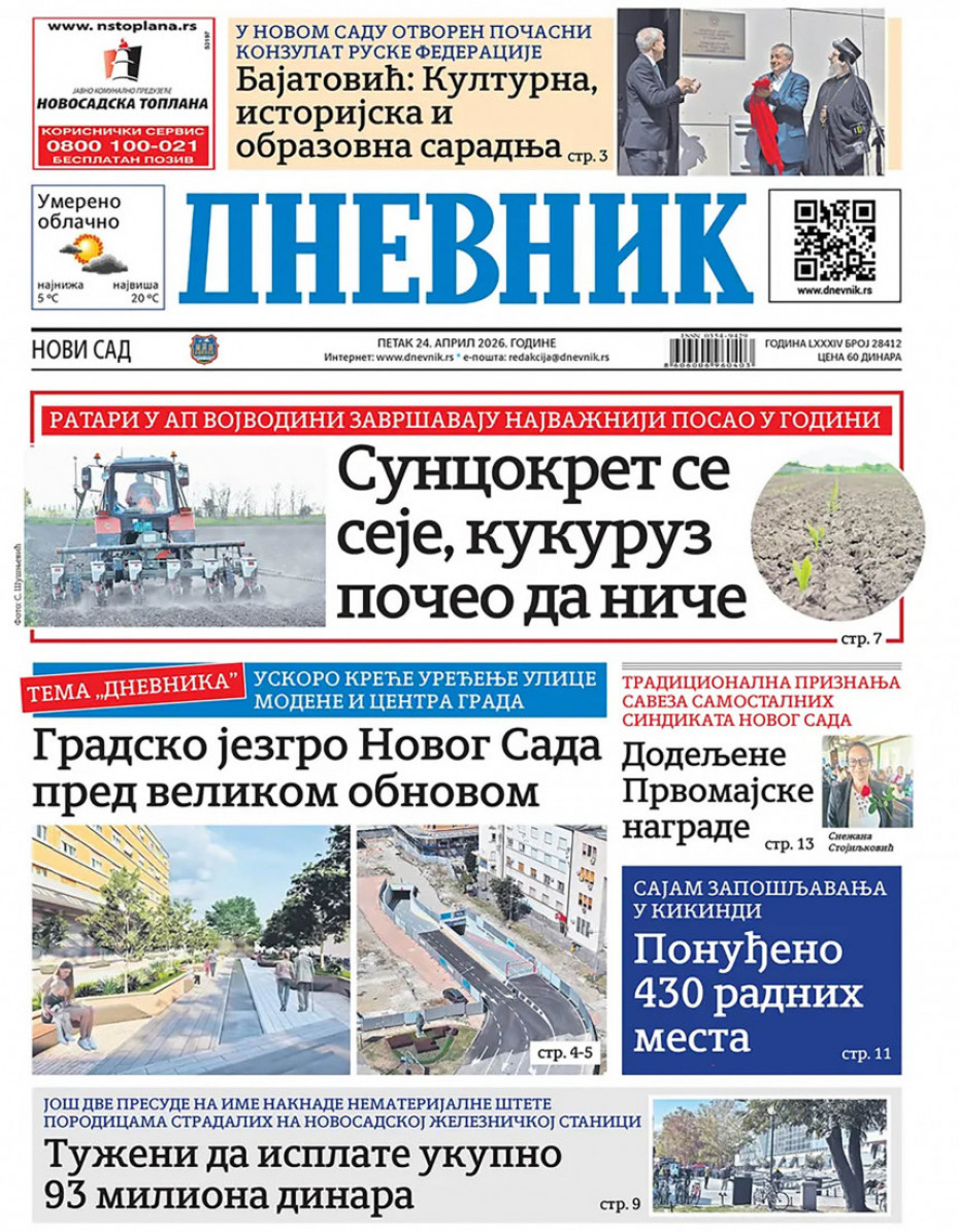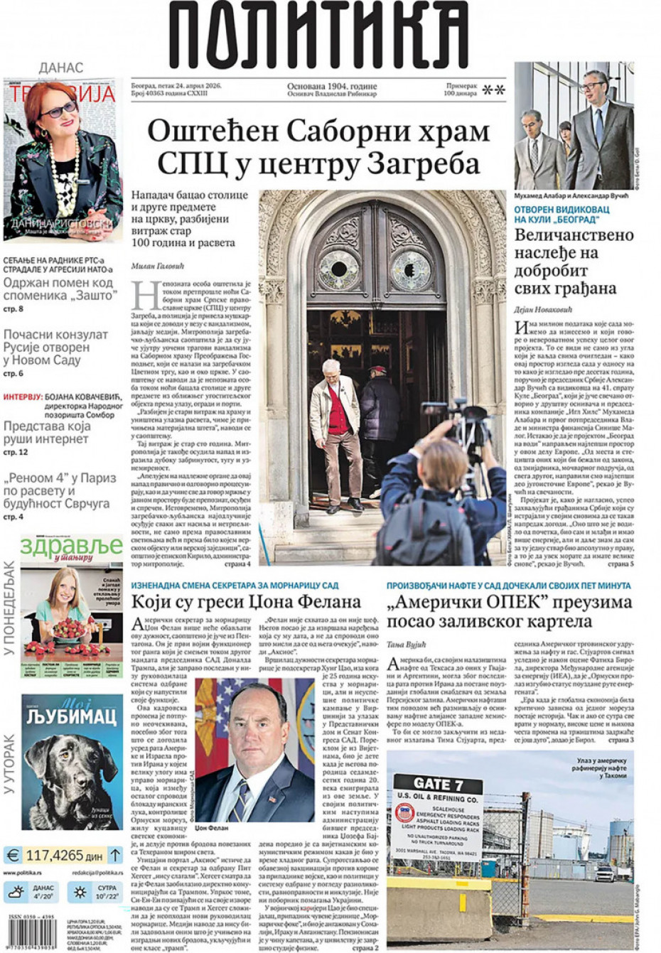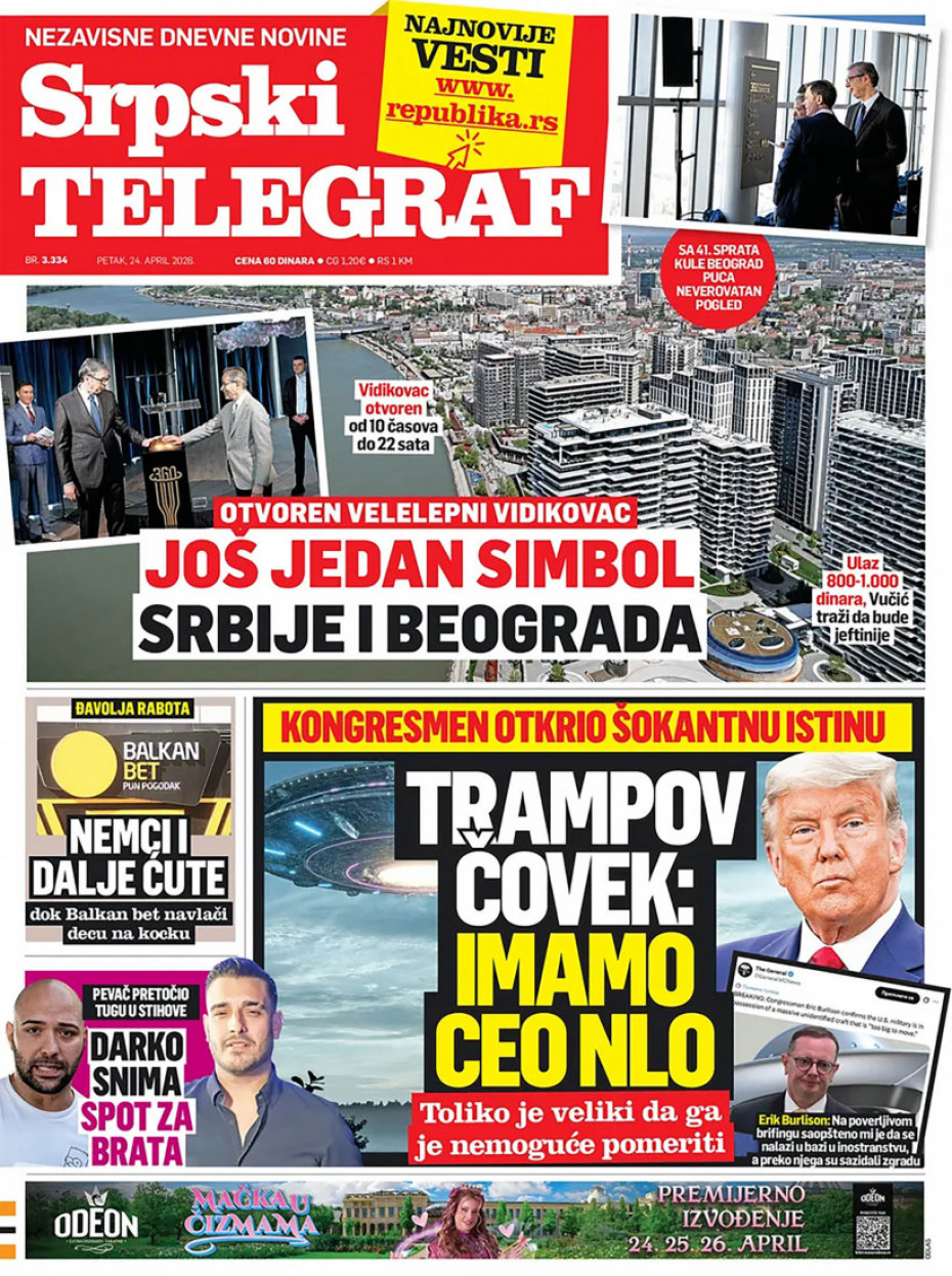 Pogledajte šta na naslovnim stranama donose dnevne novine u Srbiji u izdanju za petak, 24. april