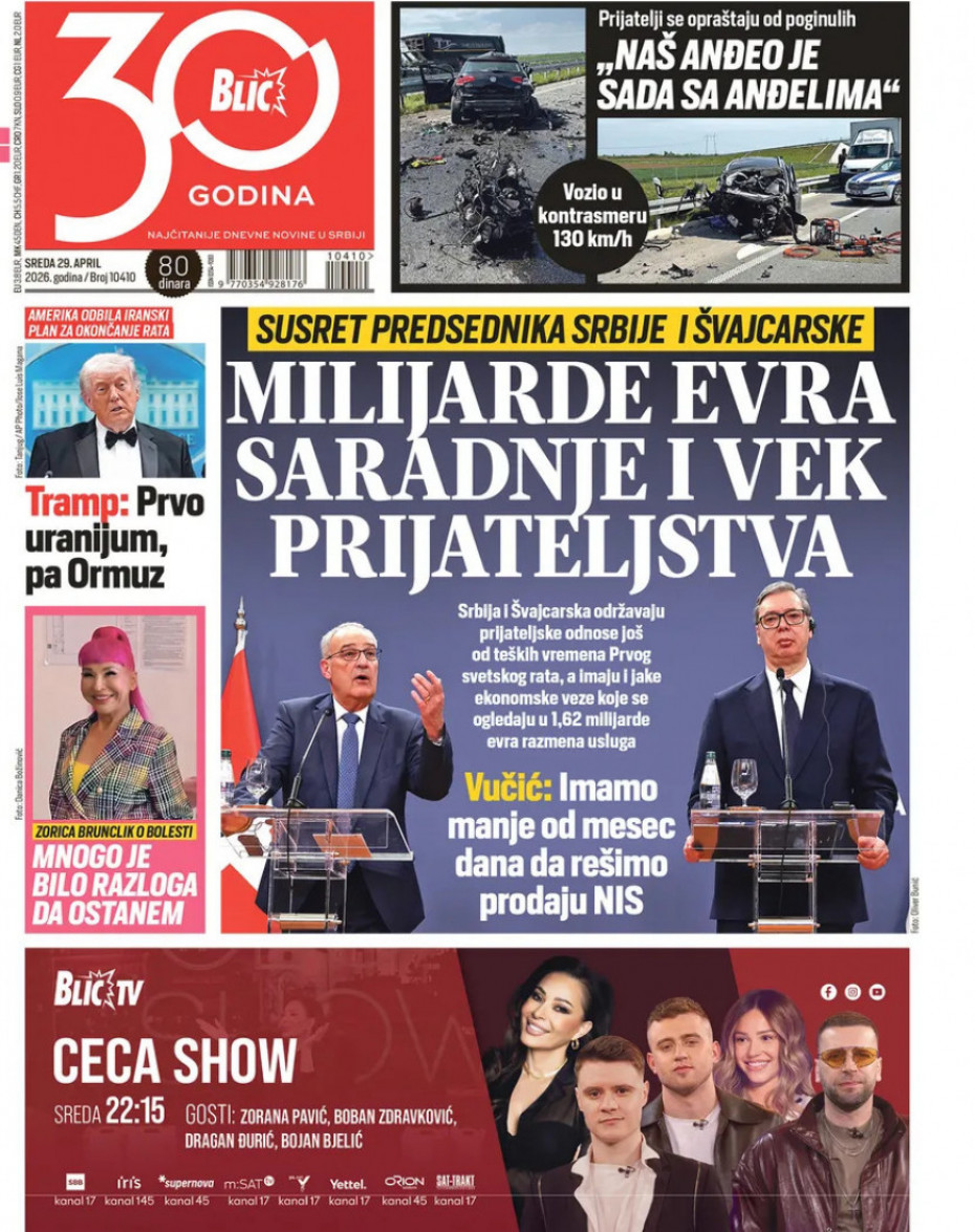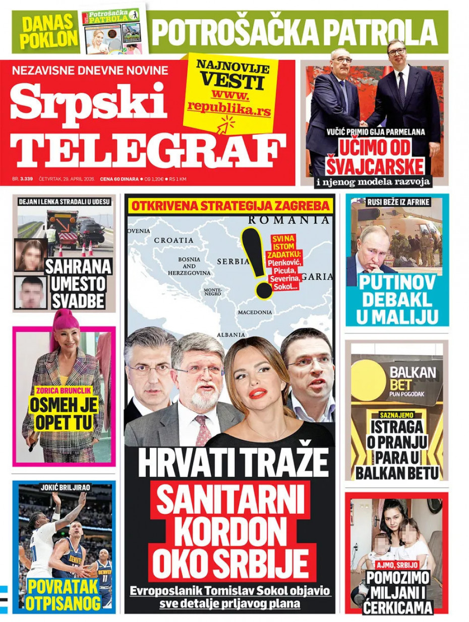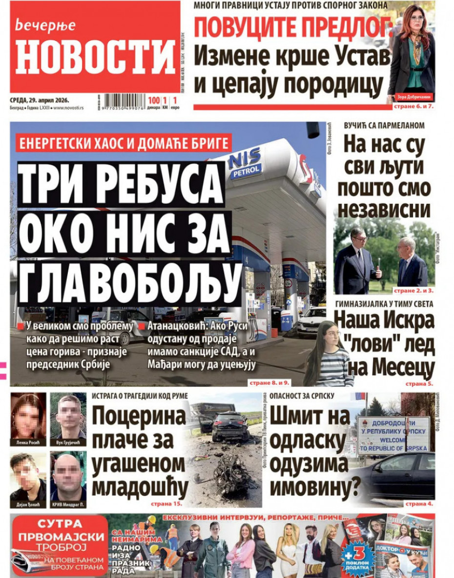 Pogledajte šta na naslovnim stranama donose dnevne novine u Srbiji u izdanju za sredu, 29. april