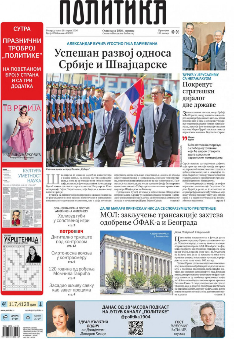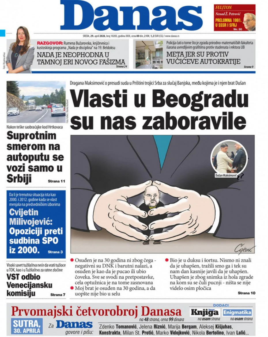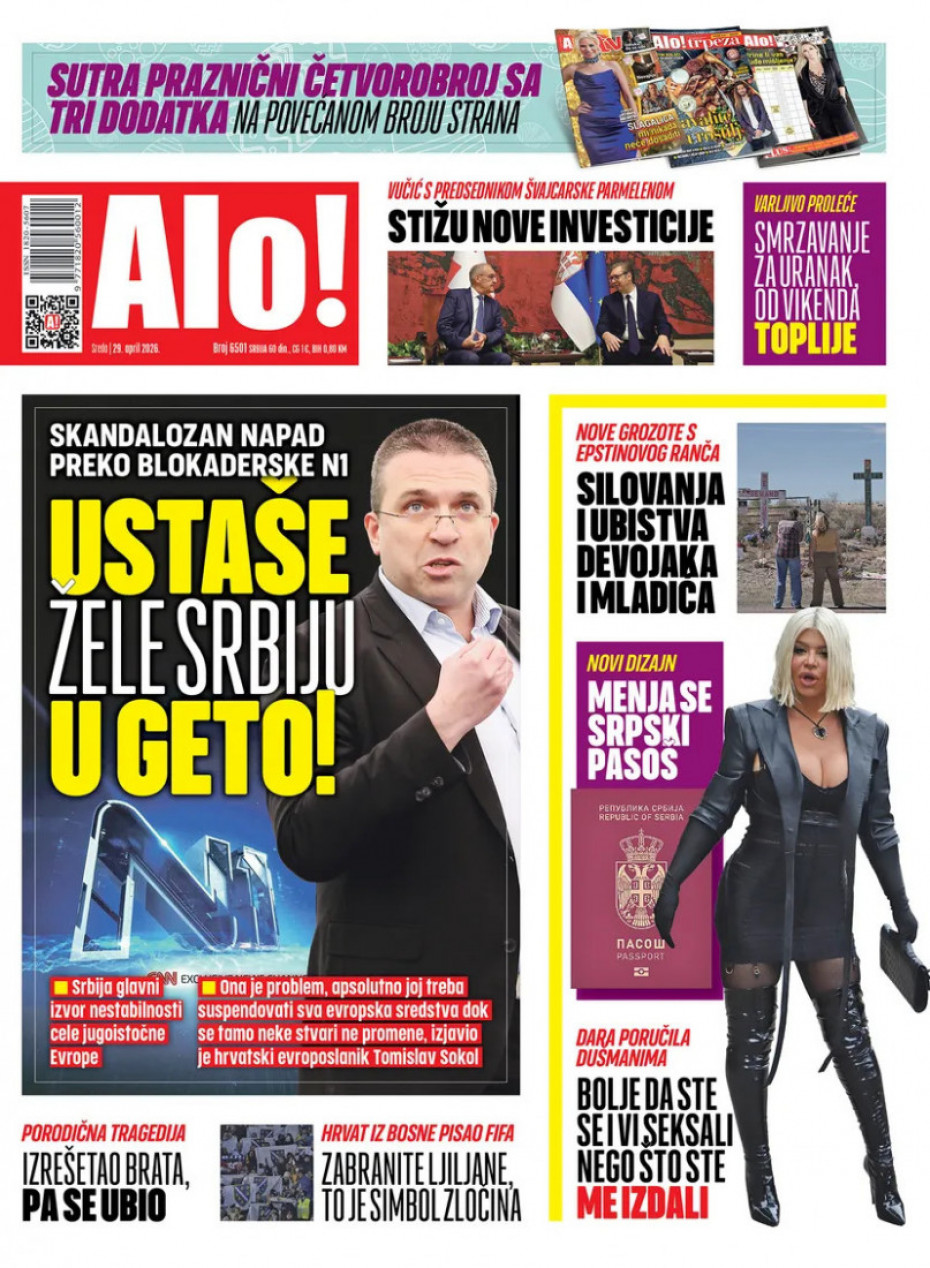 Pogledajte šta na naslovnim stranama donose dnevne novine u Srbiji u izdanju za sredu, 29. april