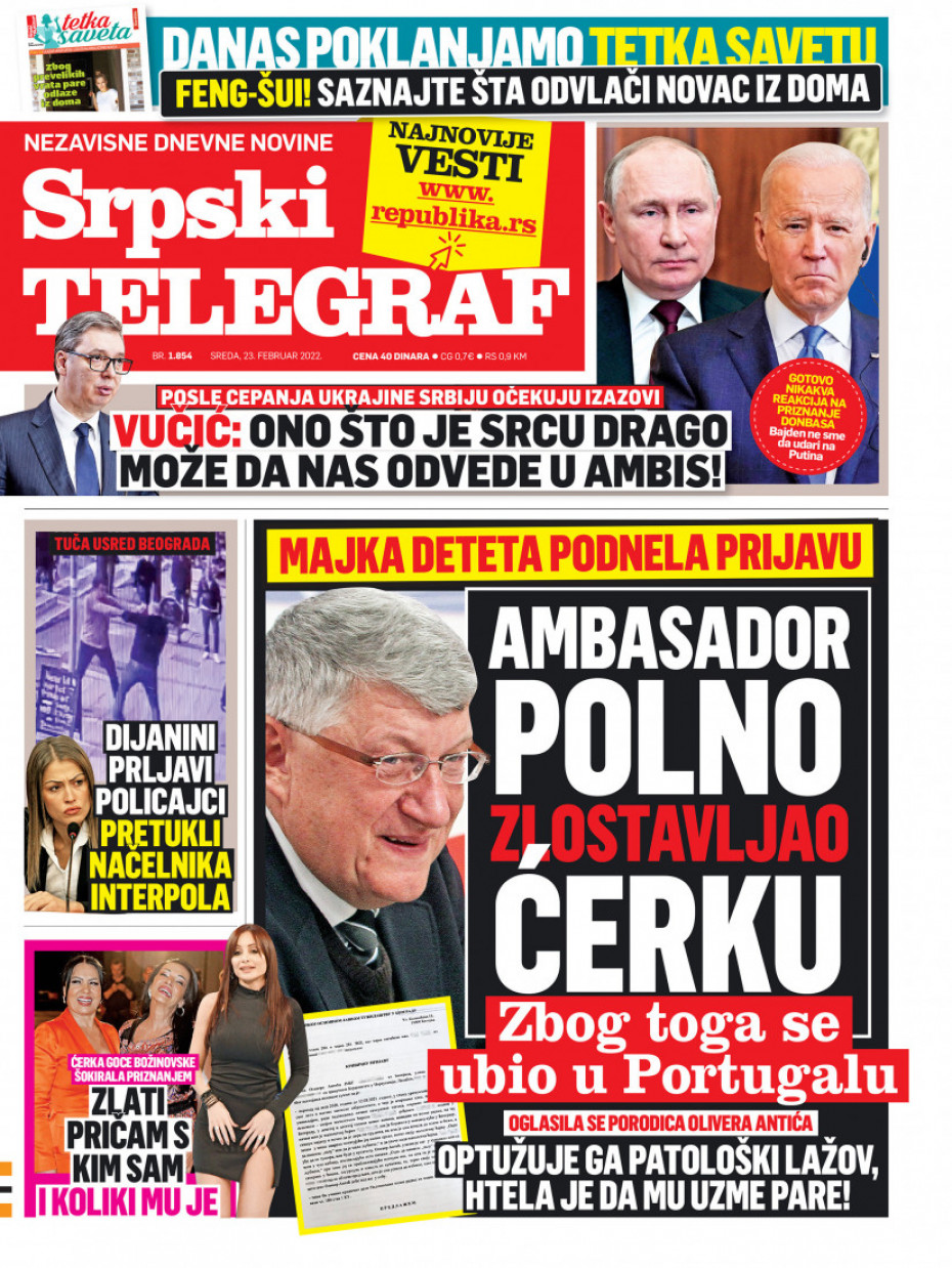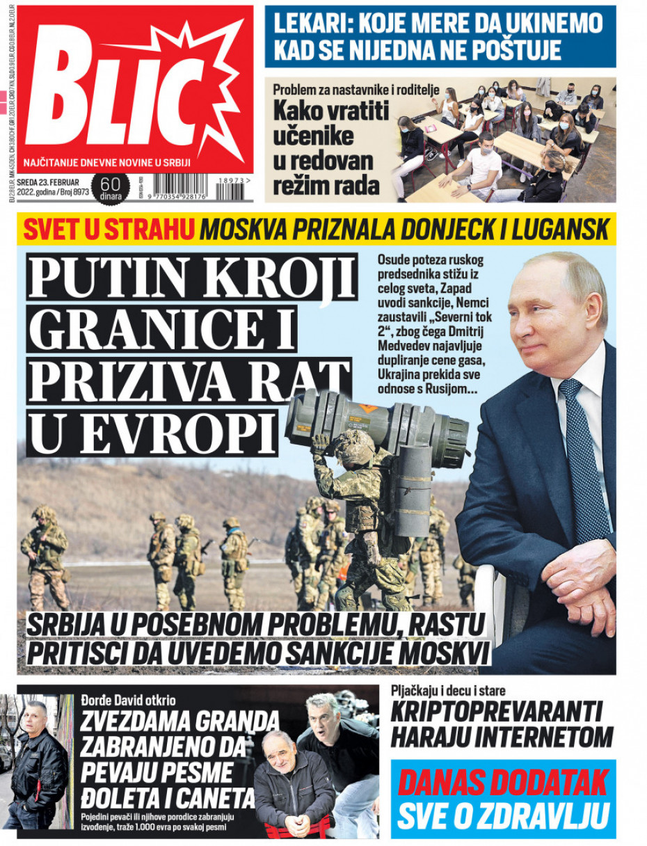 Naslovne strane dnevne štampe za sredu, 23. februar