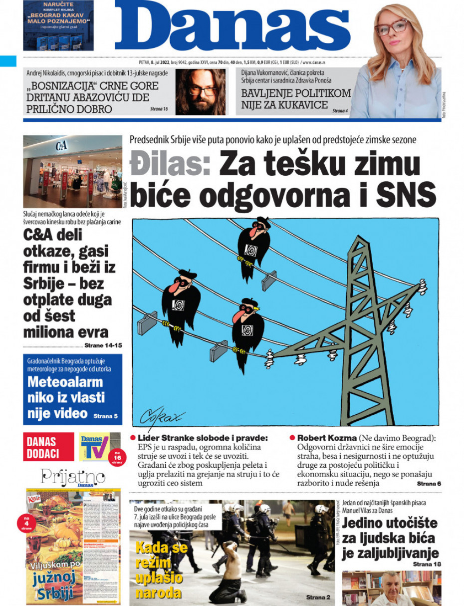 Pogledajte šta na naslovnim stranama donose dnevne novine u Srbiji u izdanju za petak, 8. jul.
