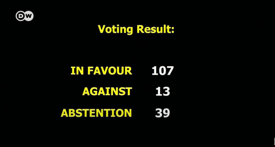 Predlog da glasanje bude javno iznela je Albanija, a samo 13 zemalja se protivilo održavanju javnog glasanja o nacrtu rezolucije, 39 zemalja bilo je suzdržano, a preostale zemlje, uključujući Rusiju i Kinu, nisu glasale.