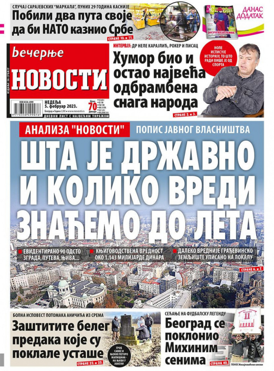Naslovne strane dnevne štampe za nedelju, 5. februar