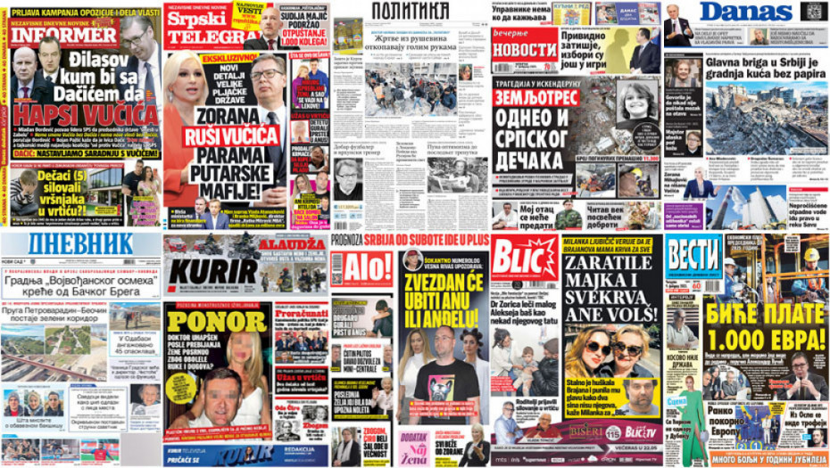 Pogledajte šta na naslovnim stranama donose dnevne novine u Srbiji u izdanju za četvrtak, 9.februar.