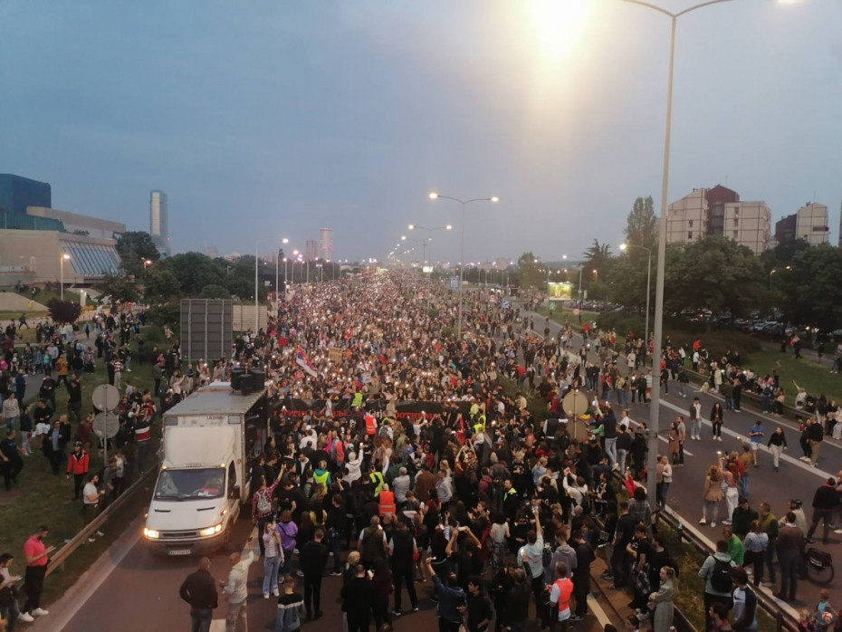 Poslanik Nebojša Zelenović pozvao je grupu demonstranata koja je ostala kod petlje Arena na auto-putu da se pomere ka Gazeli i oni se trenutno nalaze između te petlje i Gazele. Na tom mestu je saobraćaj u oba smera na auto-putu blokiran. Međutim, vozila koja dolaze iz pravca Gazele isključuju se ka ulici Vladimira Popovića, a vozila koja prelaze Gazelu u smeru ka starom delu grada uključuju se na petlji pre mosta. Prethodno su Zelenović i poslanik Srđan Milivojević rekli da će ostati na auto-putu do ispunjenja zahteva.