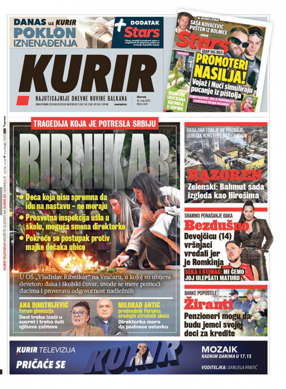 Pogledajte šta na naslovnim stranama donose dnevne novine u Srbiji u izdanju za utorak, 23. maj.