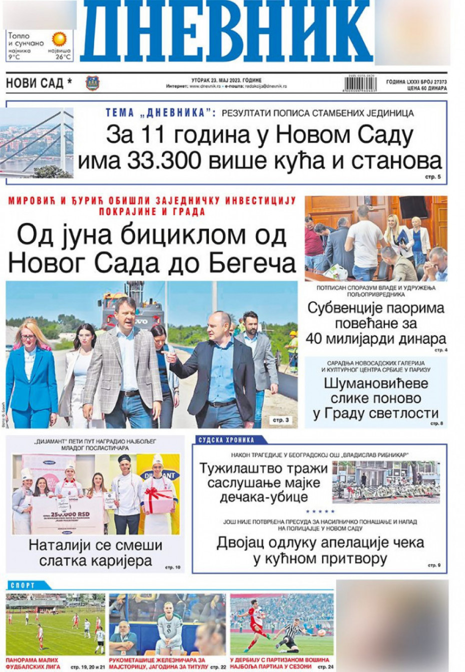 Naslovne strane dnevne štampe za utorak, 23. maj