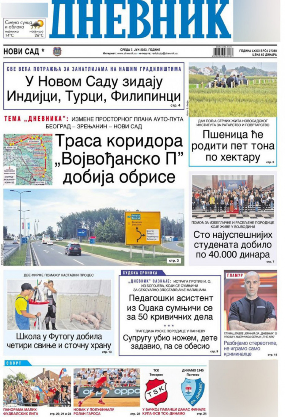 Naslovne strane dnevne štampe za sredu, 7. jun