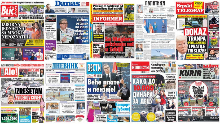 Pogledajte šta na naslovnim stranama donose dnevne novine u Srbiji u izdanju za petak, 9. jun.
