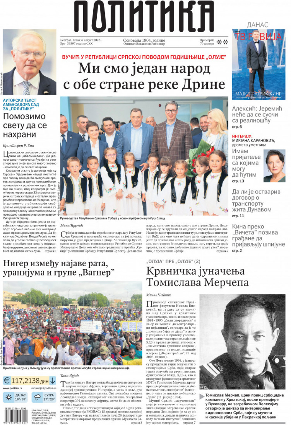 Naslovne strane dnevne štampe za petak, 4. avgust