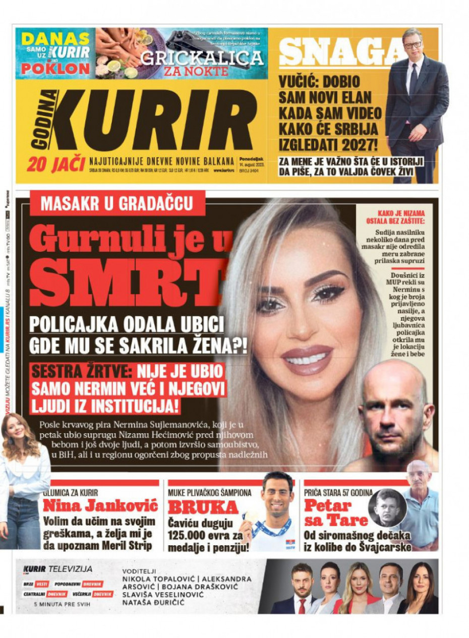 Pogledajte šta na naslovnim stranama donose dnevne novine u Srbiji u izdanju za ponedeljak, 14. avgust.