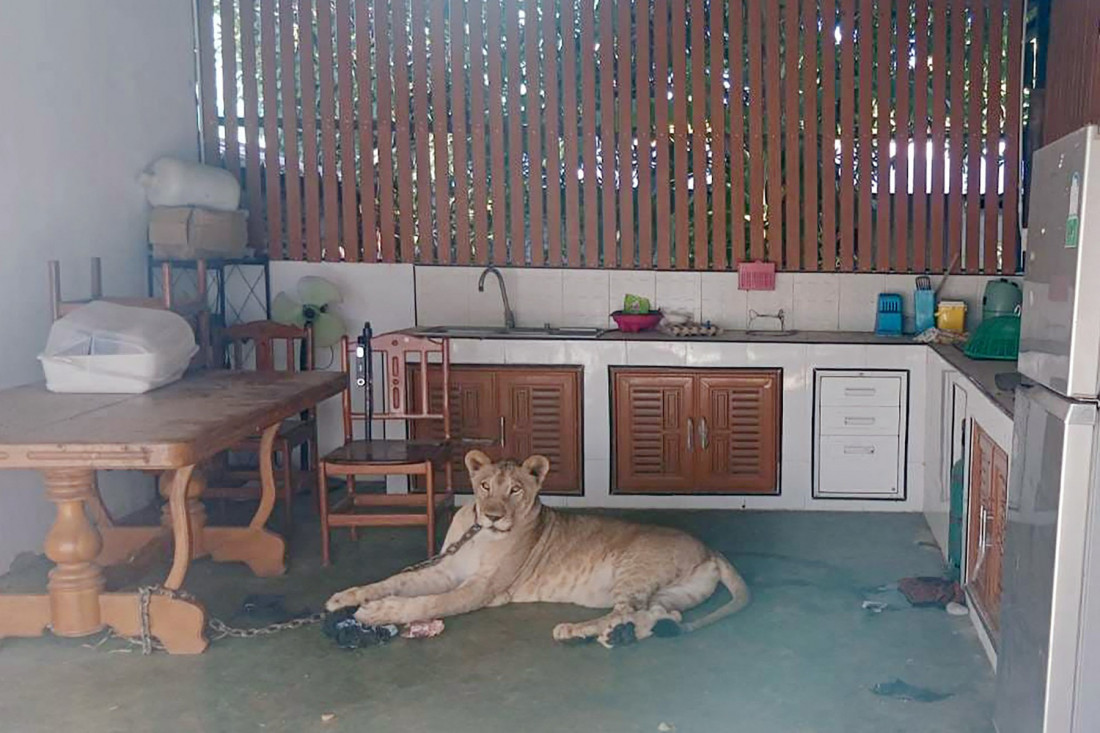 Posedovanje lavova je legalno na Tajlandu, a njihov broj u zatočeništvu je proteklih godina naglo skočio na skoro 500 jedinki u zoo vrtovima, farmama odgajivačnicama i privatnim domovima.