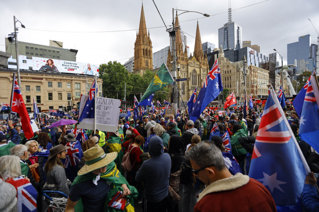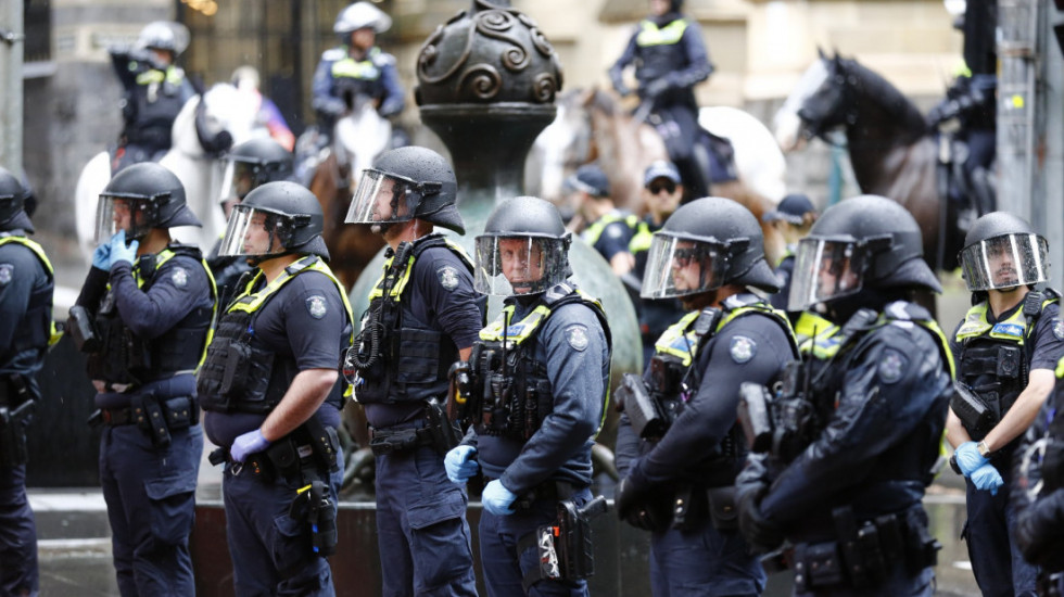 Policija australijske savezne države Viktorija je saopštila da su dve grupe demonstranata, koje su pratili pripadnici policije za razbijanje demonstracija, bile odvojene i da nije bilo nasilnih sukoba.