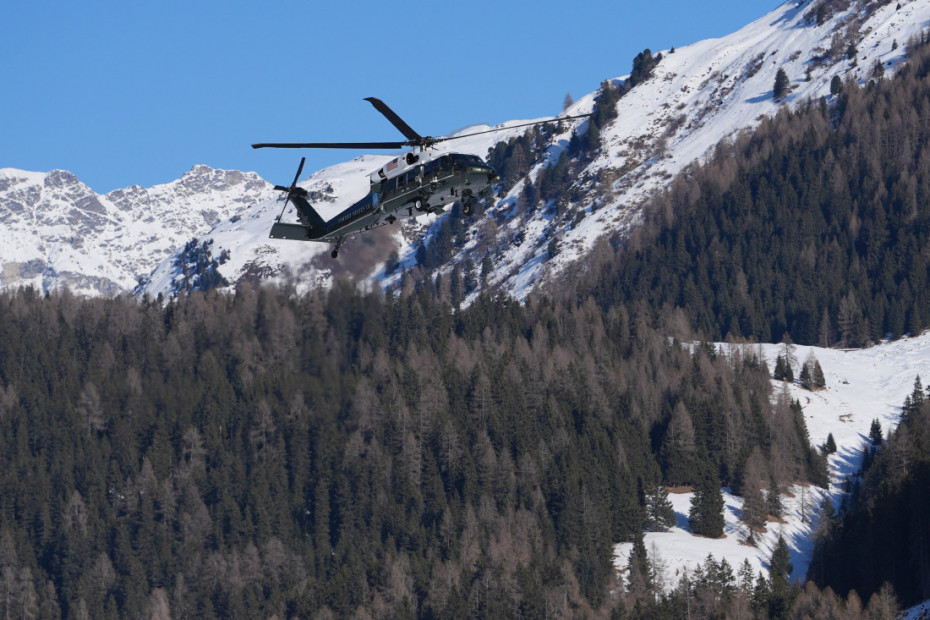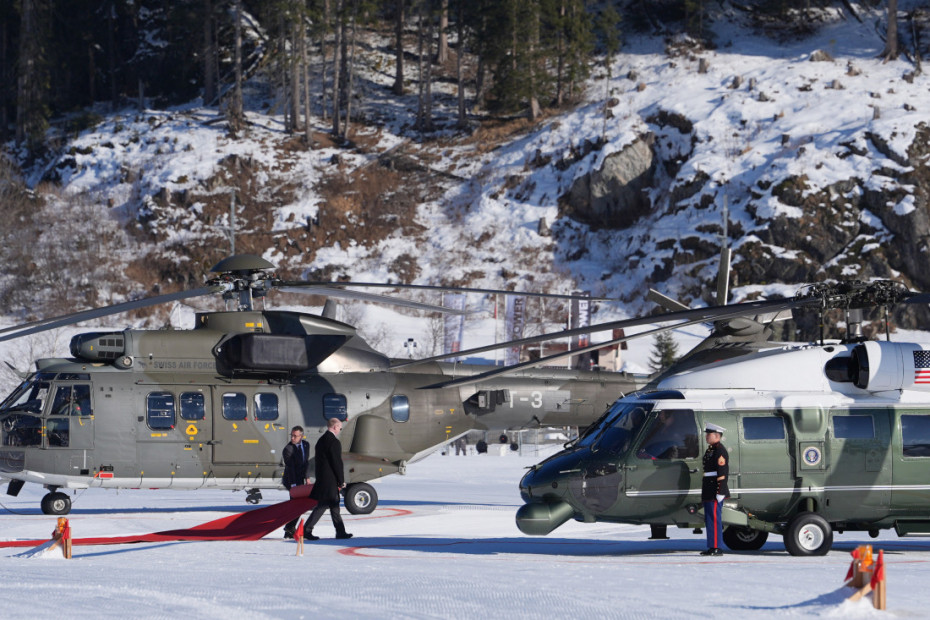 Donald Tramp je sada sleteo u Davos, nakon što je helikopterom Marine One prebačen do alpskog skijališta.