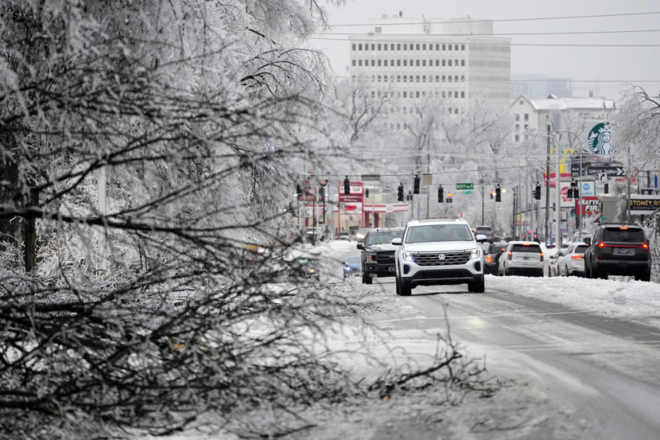 Ledena kiša padala je u delovima Džordžije, preko Severne i Južne Karoline i srednjoatlantskog regiona, sa jakim snegom u dolini Ohaja i na severoistoku.