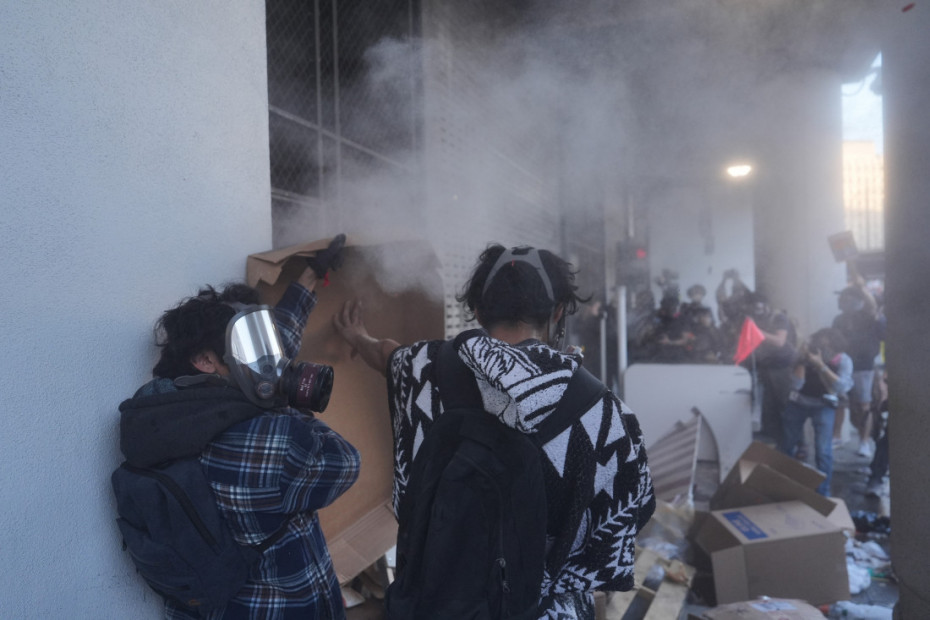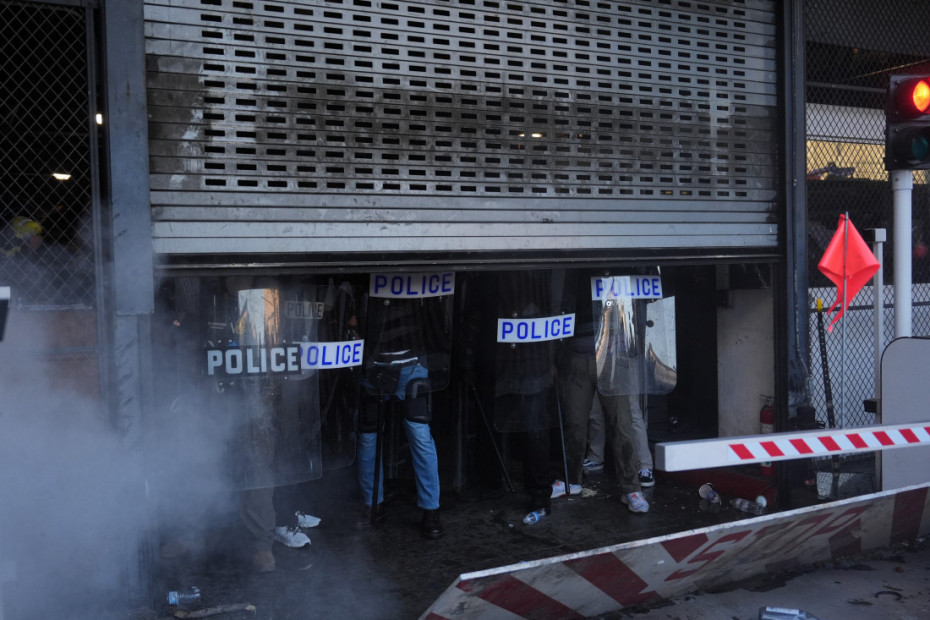 Policija je navela da je došlo do manjih požara u kontejnerima pored zgrade i da su vatrogasci morali da čekaju dolazak policije kako bi intervenisali.