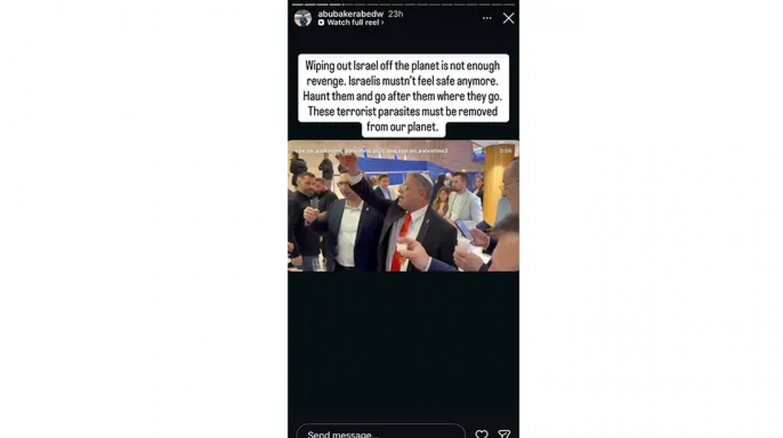 "Brisanje Izraela sa planete nije dovoljna osveta. Izraelci više nikada ne smeju da se osećaju bezbedno. Proganjajte ih i napadajte ih gde god da odu. Ovi teroristički paraziti moraju biti uklonjeni sa naše planete", napisao je Abed na Instagramu.