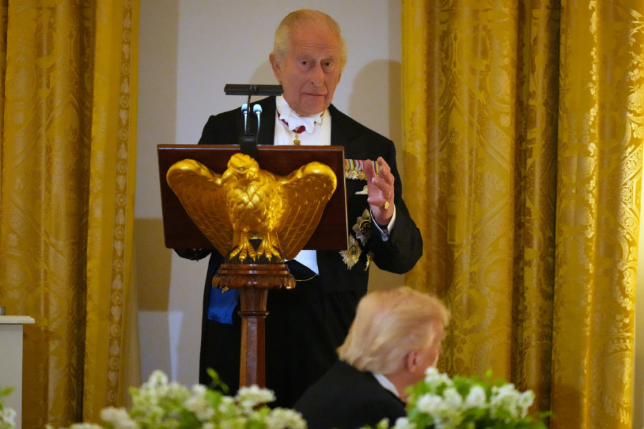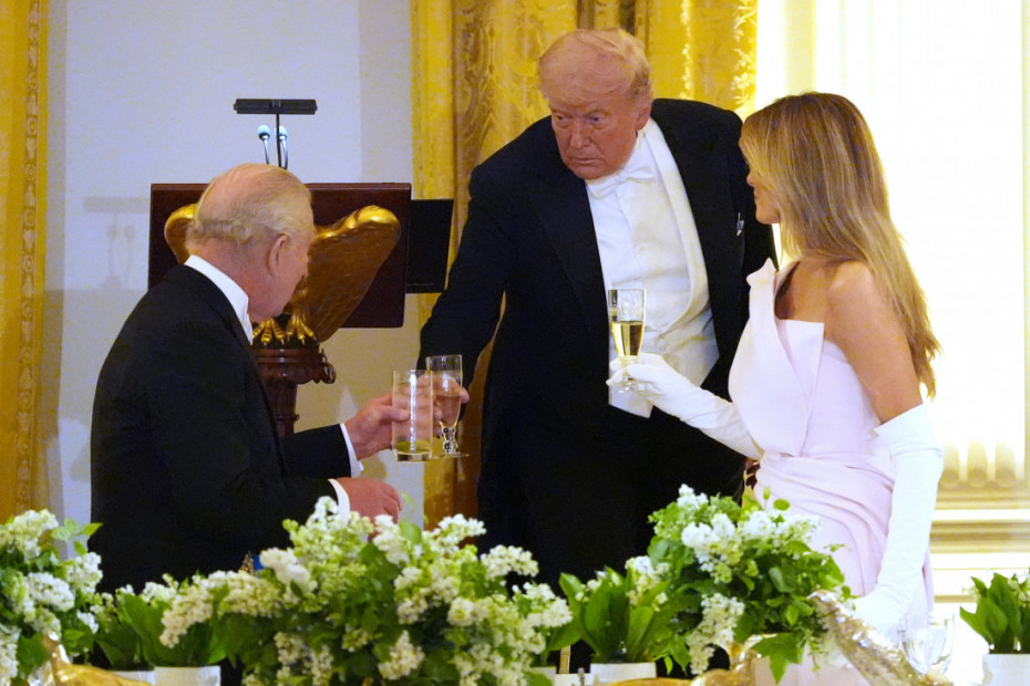 Britanski kralj Čarls III pozdravio je sinoć na državnoj večeri u Beloj kući savezništvo sa SAD u "neizvesnom svetu", dok je američki predsednik Donald Tramp veze za Ujedinjenim Kraljevstvom opisao kao "prijateljstvo kao nijedno drugo" i istakao da se kralj slaže sa njim da Iran ne sme da se nuklearno naoruža.