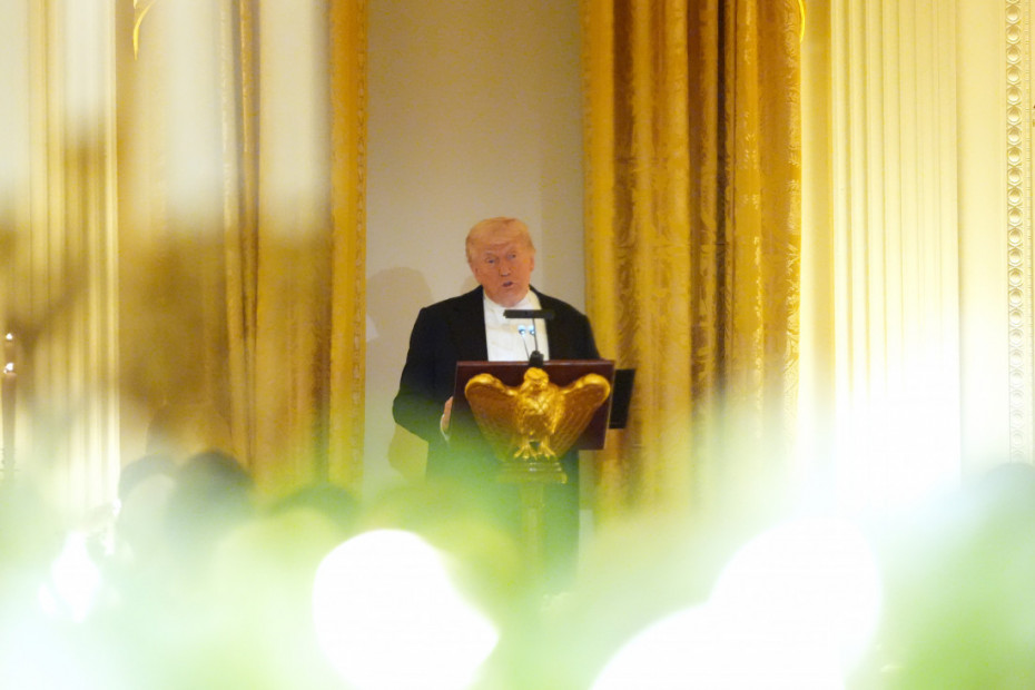 Tramp se, u svom obraćanju na večeri, kratko osvrnuo na sukob na Bliskom istoku, rekavši da Sjedinjenim Državama "veoma dobro ide" u ratu sa Iranom.