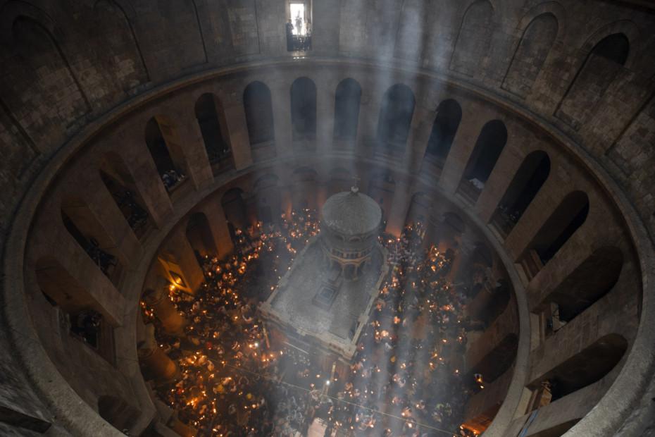 Pravoslavni hrišćani veruju da se u subotu pred Uskrs čudesan plamen pojavljuje u crkvi Svetog Groba, prostranoj bazilici iz 12. veka izgrađenoj na mestu gde se veruje da je Isus razapet, sahranjen i gde je vasksao.