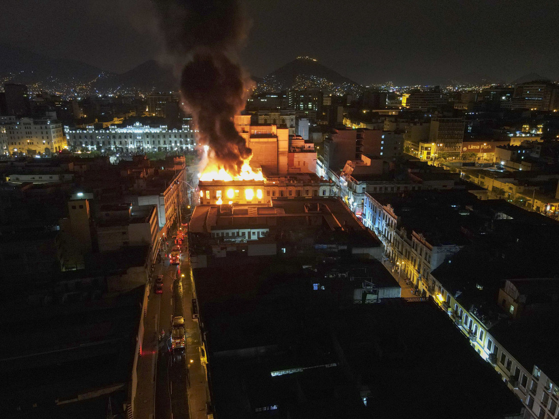 Tokom protesta koji su se proširili po celom Peruu u glavnom gradu Limi do temelja je spaljena zgrada stara gotovo jedan vek.